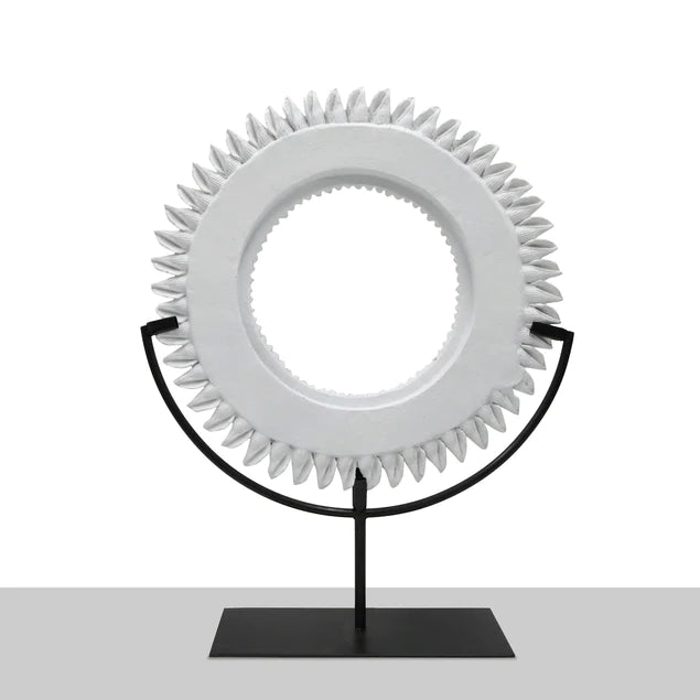 Cast in resin, real ocean shells were used to create a mold. Our two styles of Calypso Sculptures are perfect examples of the popular 18th century Rococo style revealing striking repetition, movement, order and texture. Each piece could show differences with age, pitting and color. Sculpture is shipped separate from the iron and resin base, assembly required. Indoor only.