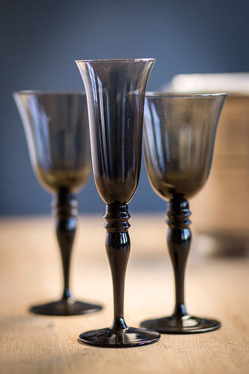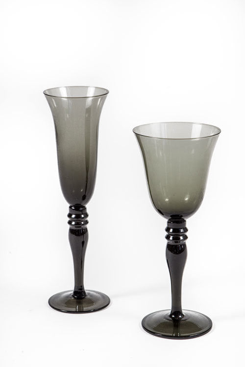 Champagne & Wine Glass in Smoke. Minor imperfections in these glasses can be expected from the handmade process. Not dishwasher safe.