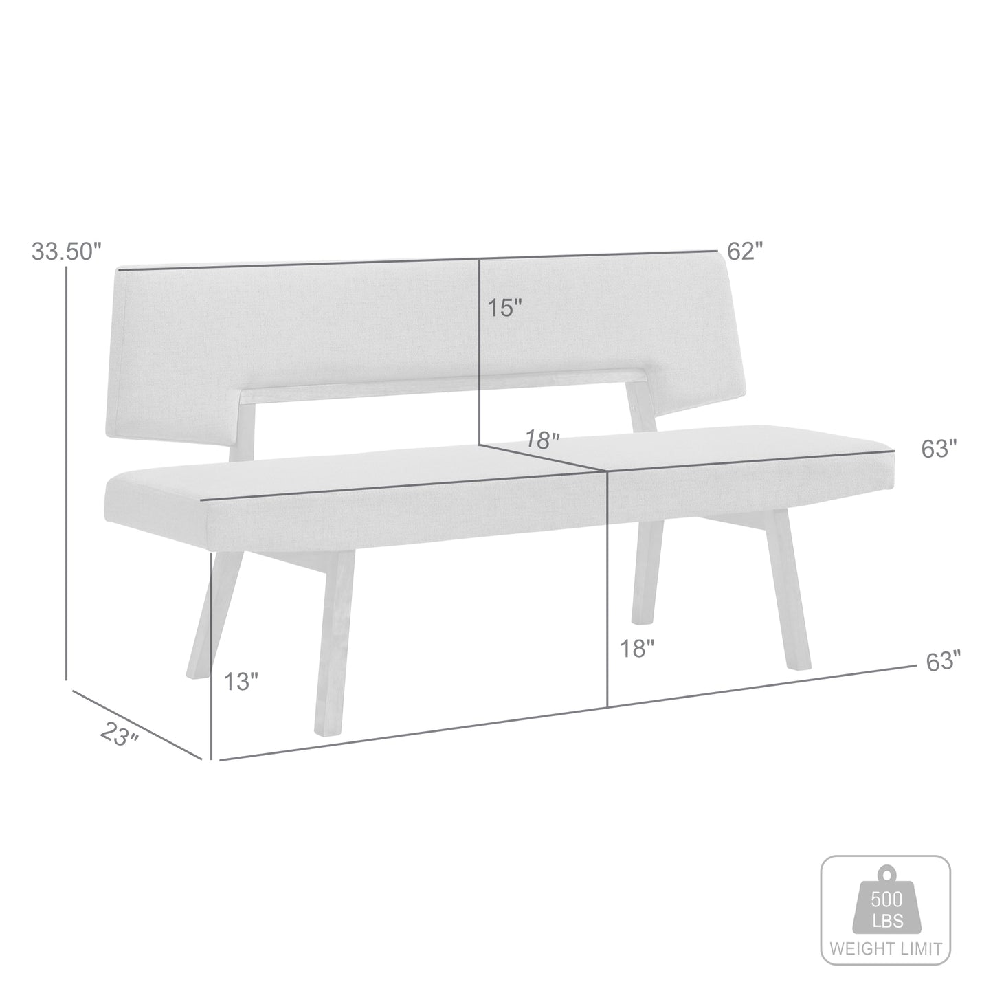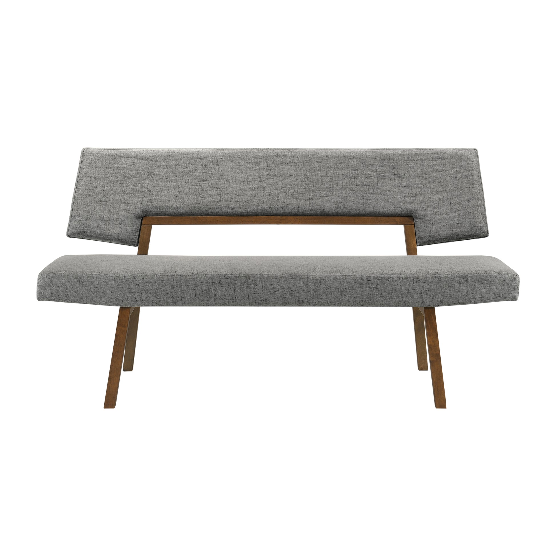 Bring comfort and elegance to your dining area with our Channell Upholstered Wood Dining Bench. The chic and elegant dining, bedroom, or entryway bench presents the perfect blend of style and functionality. It features an upholstered back and seat for a neatly tailored and inviting profile. The wooden frame and angled legs add stunning detail and a dose of elegance to our dining bench, its back opening allows for breathability. Its practical and stylish design includes a padded back and seat to effortlessly adapt and offer a comfortable seat in your dining room, living space, kitchen, or entryway. Mindfully crafted from rubberwood, our bench remains durable and easy to maintain to ensure years of use. Measuring 63 inches wide, this bench easily seats up to 3. The Channel Wood Dining Bench is available in your choice of walnut finish with charcoal, blue, and orange fabric or black finish with charcoal fabric to best suit your need and preferences.