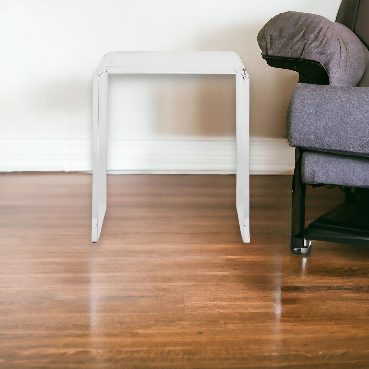 | Clear acrylic end-side table. |