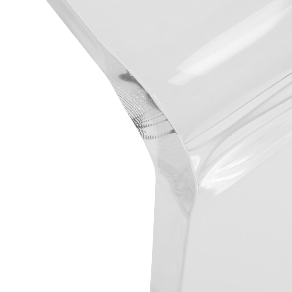 Optimize your space and add some charm to your room with the 18-inch clear plastic / acrylic square end table. A solid clear acrylic frame is finished off with a matching clear plastic / acrylic seat, giving this table a chic monotone look. An ideal location for placing your snacks and drinks, and a place to keep your lamp, frames, or other accessories. You can also use it as an entryway table to hold your keys. 18.12-inch H x 15.75-inch W x 15.75-inch D