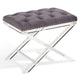 Sleek and chic, our Armen Living button-tufted Cody ottoman with silver nailhead trims features acrylic legs and is upholstered to perfection. This contempoary ottoman is versatile and can be used in your hallway, to place magazines or casually as a cocktail table. It is aesthetically pleasing and can be used to enhance the interior of your home even as a vanity stool. Made of soft fabric and durable clear acrylic x-cross legs, it goes beautifully with any contemporary and modern styles. Available in Black or Gray velvet upholstery.