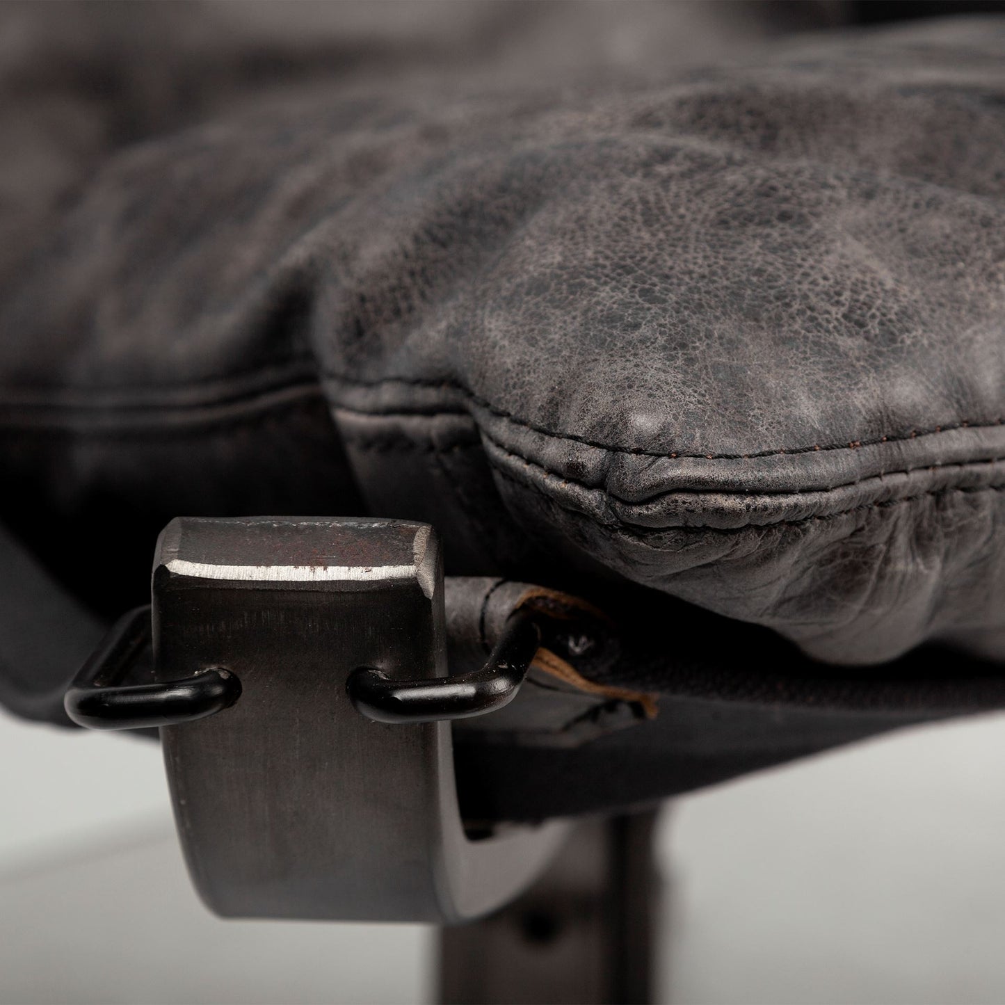 Colarado Black Leather Suspended Seat Accent Chair with Iron Frame |A stylish chair featuring premium leather, suspended seating in a black tone.