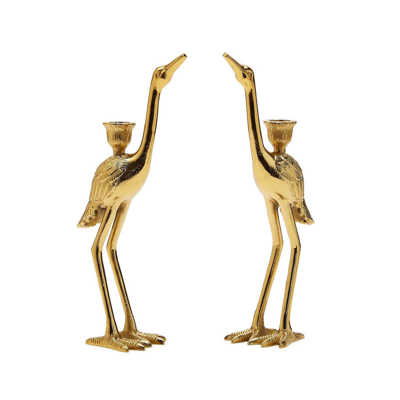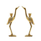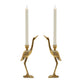 Bring the elegance of nature into your home with these pairs of cast aluminum hand-finished golden taper candle holders/sculptures. A pair of cranes show off their graceful legs and elongated necks creating a graceful decorative accent and candle holder