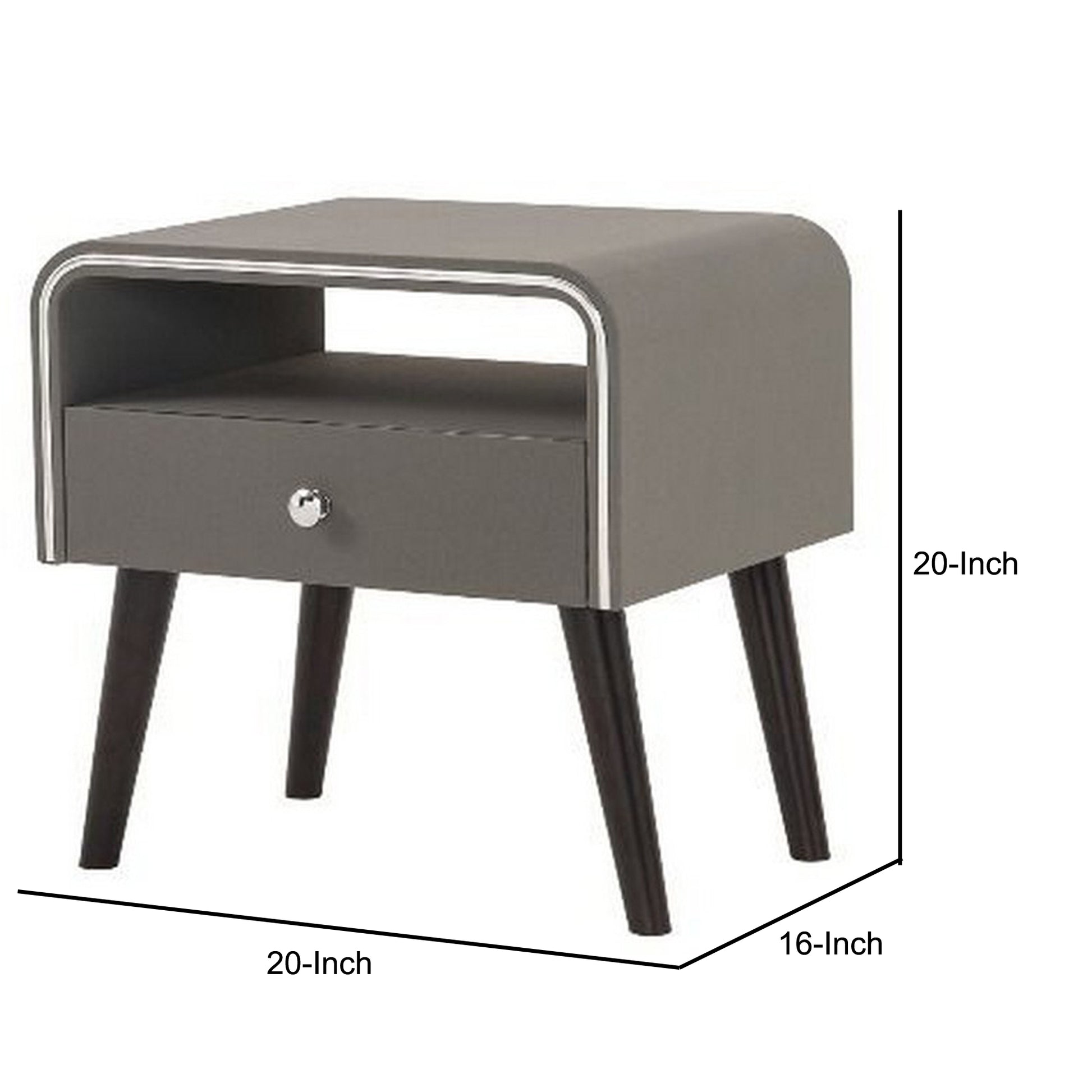 Curved Edge 1 Drawer Nightstand With Chrome Trim Gray And Brown By Benzara