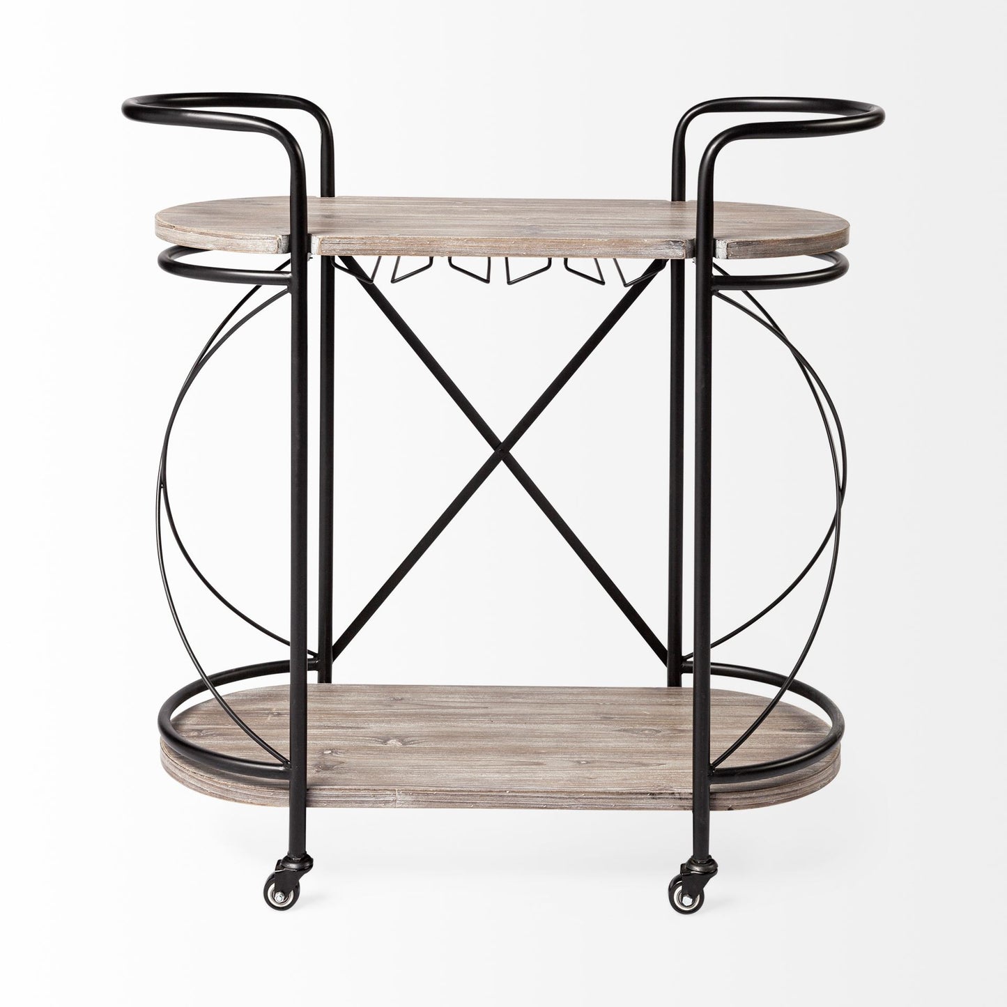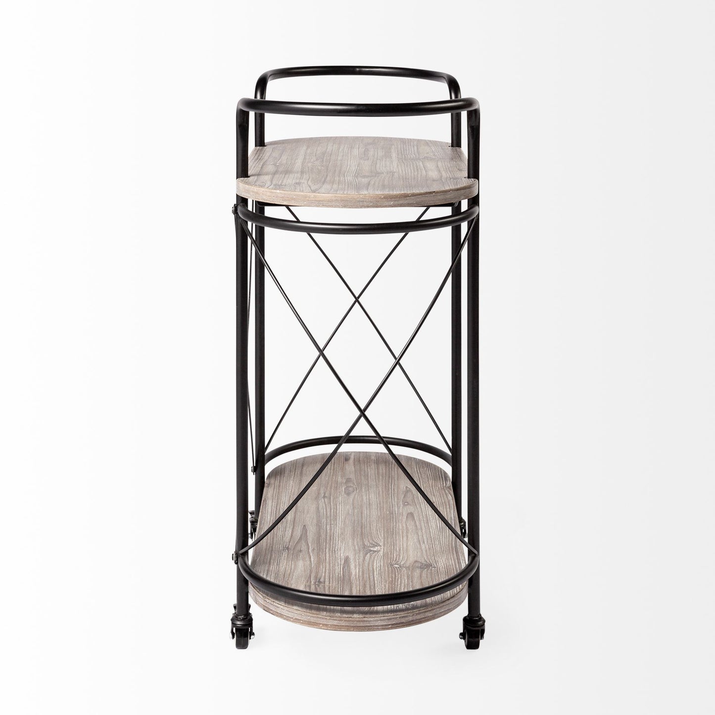Cyclider Black Metal With Two Wooden Shelves Bar Cart By Homeroots