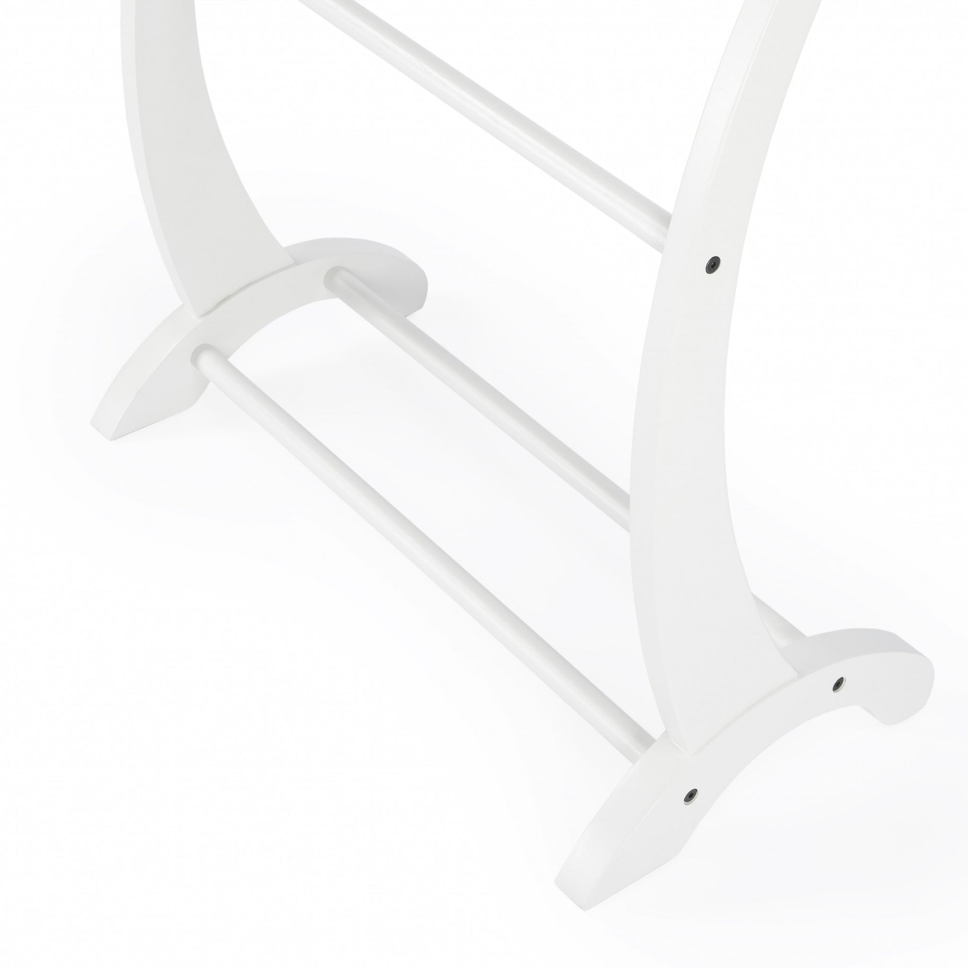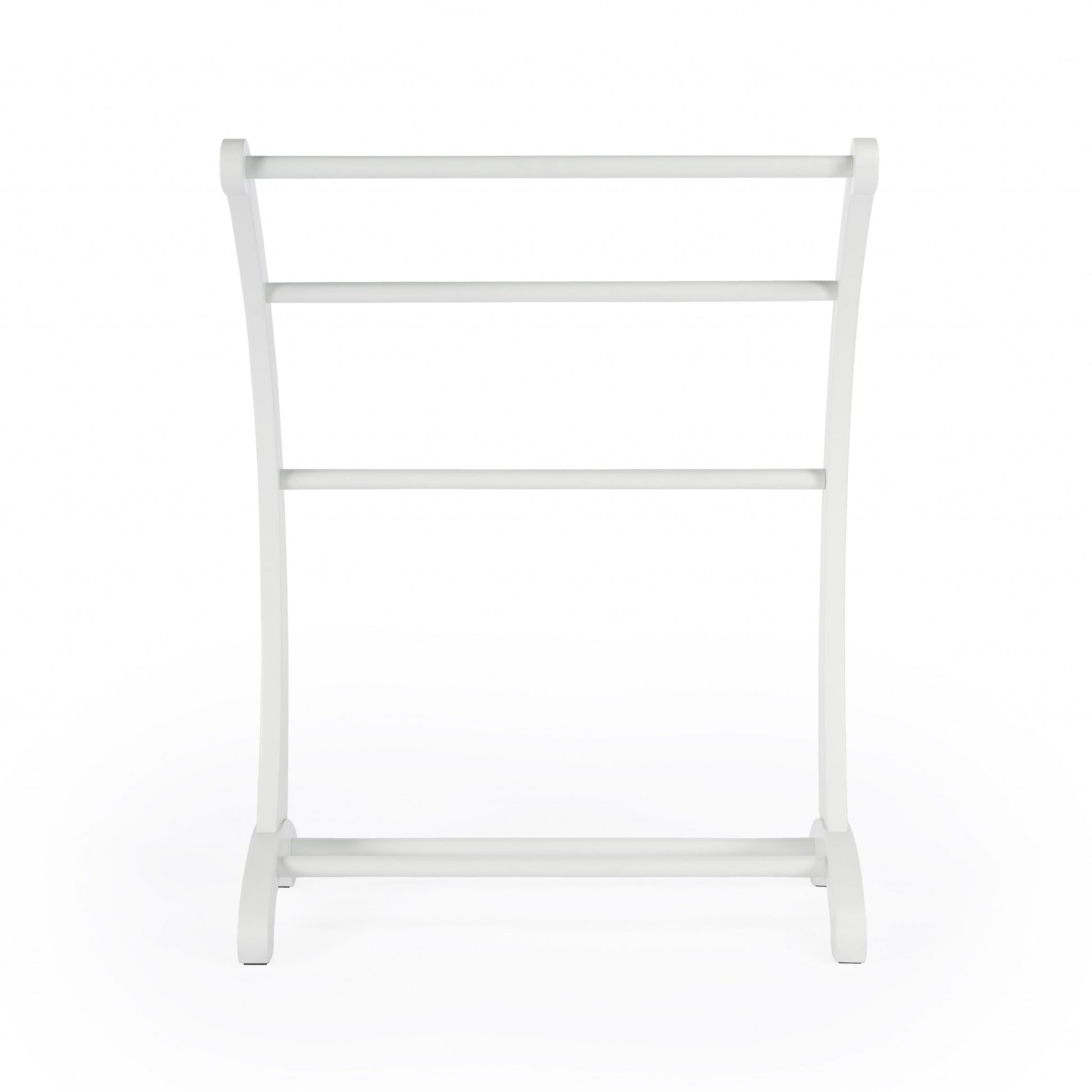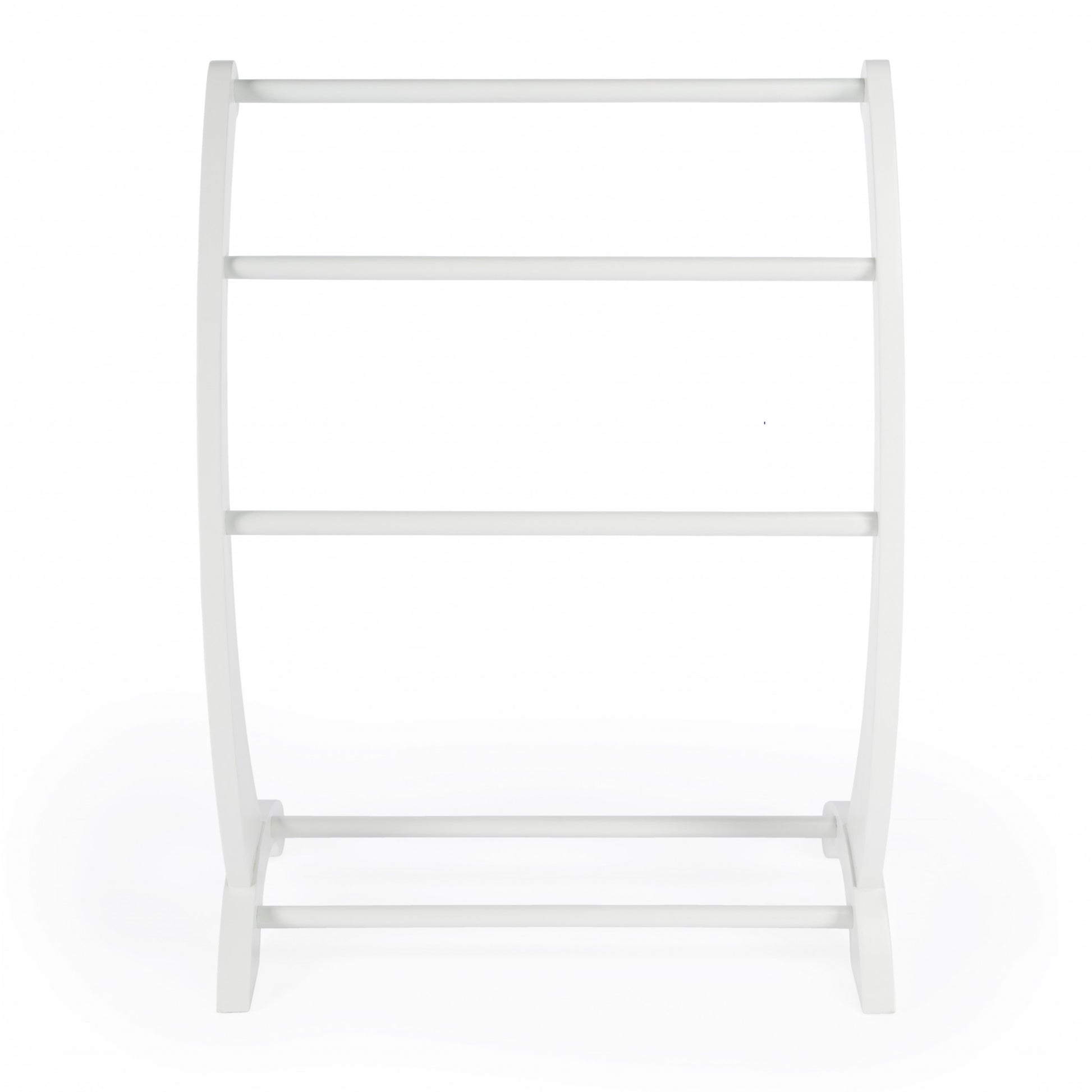 Gracefully arched to perfection the Deep Cherry Blanket Stand can be included to any authentic decor. It's freestanding character makes it portable to shift to any room. Crafted from rubber wood and poplar wood solids the three tubular horizontal wood frames provide ample storage for blankets and quilts. The beautiful cherry polish finish makes it adaptable to any room in the house. 35.75" x 28" x 14"