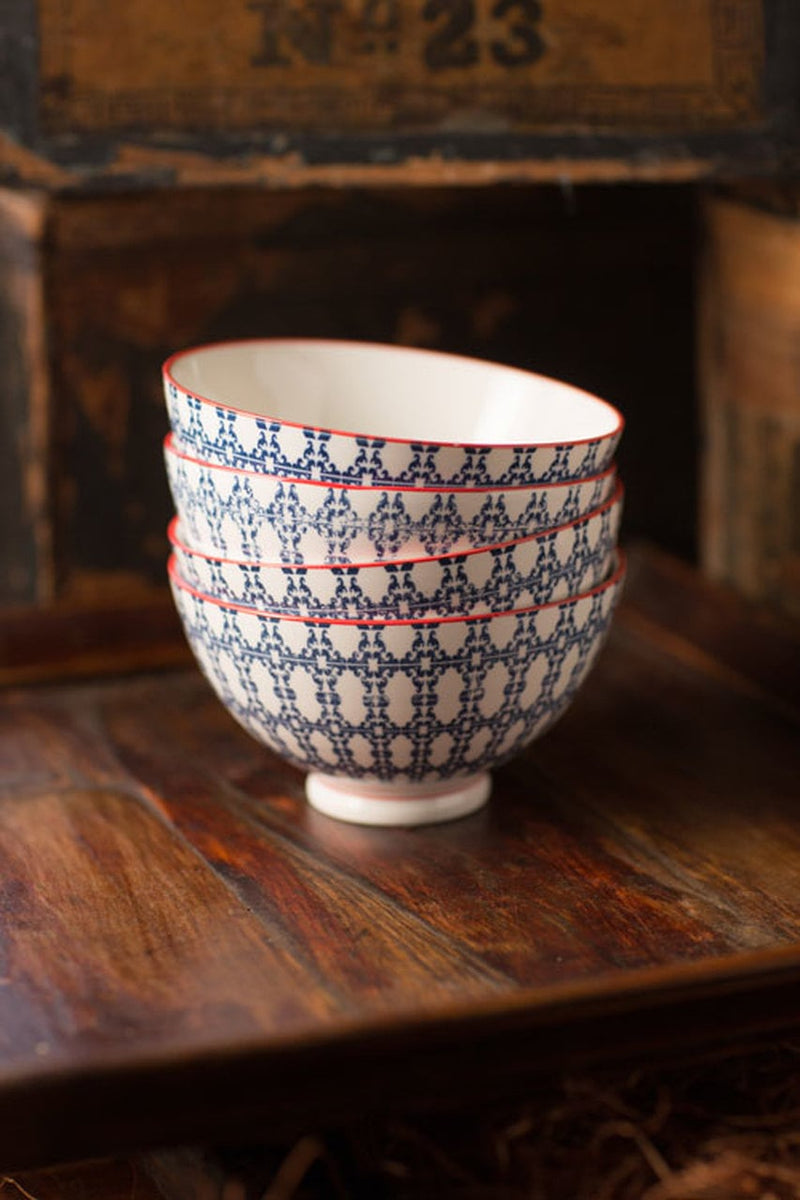 Diamond Pattern Ceramic Bowl Set of 4 by Vagabond Vintage