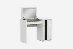 Create an elegant, traditional design in your bedroom with the Gold Patina and Bone vanity desk. This hand-crafted piece inspired from the luxurious designs of the past, this seven-drawer, desk features elaborate wood carving details, traditional hardware and a sophisticated style.
