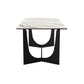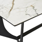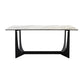 Embrace the fresh, inviting, and versatile appeal of our Esme Dining Table in Stone and Metal. Clean lines and clever details lend a sophisticated and eye-catching presence to our dining table. It features a sintered stone rectangular tabletop showcasing the rich textures of Golden Jade stone. A durable yet elegant alternative to quartz, this tabletop is resistant to etching, scratches, burns, and stains. Its trestle, black metal base showcases eye-catching curves to add soft elegance to your home. Our dining table can comfortably seat up to six individuals to complement both your formal and casual meals. With a versatile styling potential, the table can serve as the perfect spot to entertain and spend leisurely time in your formal or casual dining room or kitchen. It is crafted with durable and easy-to-care material. The Esme dining table is available in a black metal finish on the base with a golden jade stone top.