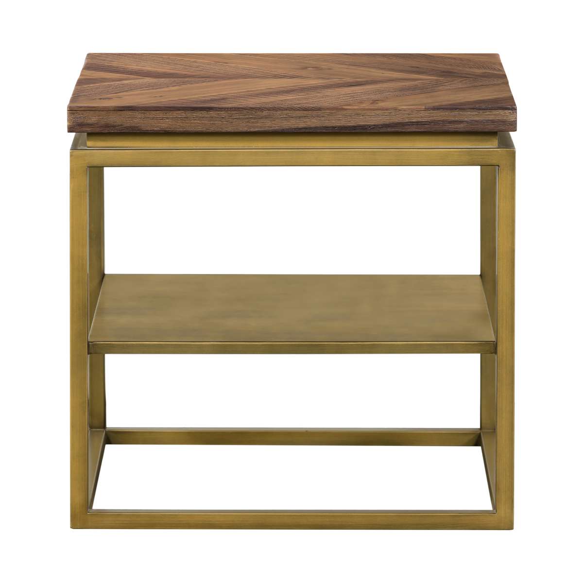 Faye Rustic Brown Wood Side table with Shelf and Antique Brass Base By Armen Living