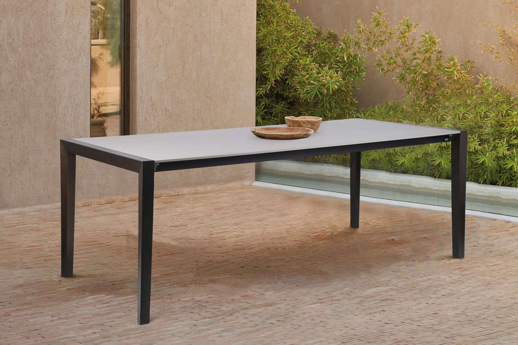 Fineline Indoor Outdoor 80" Rectangle Dining Table in Dark Eucalyptus Wood and Super Stone By Armen Living