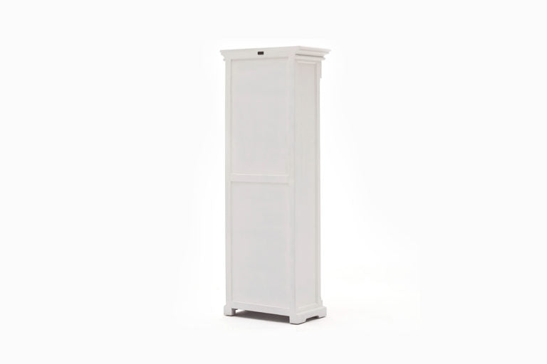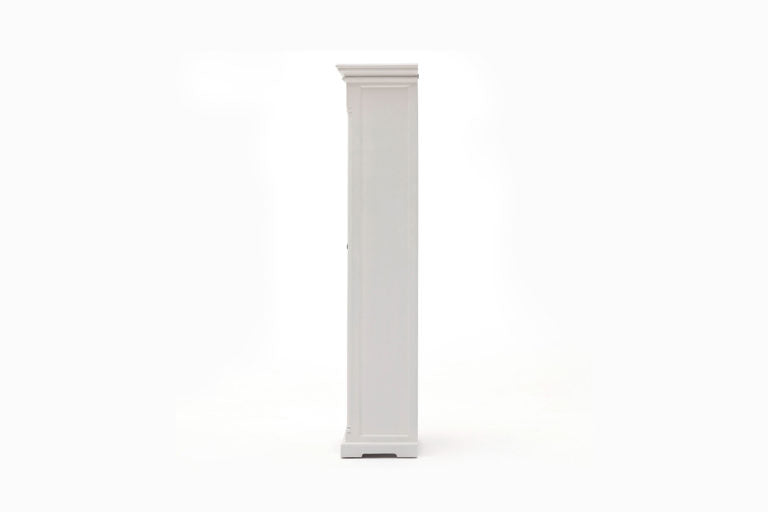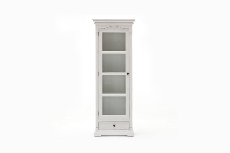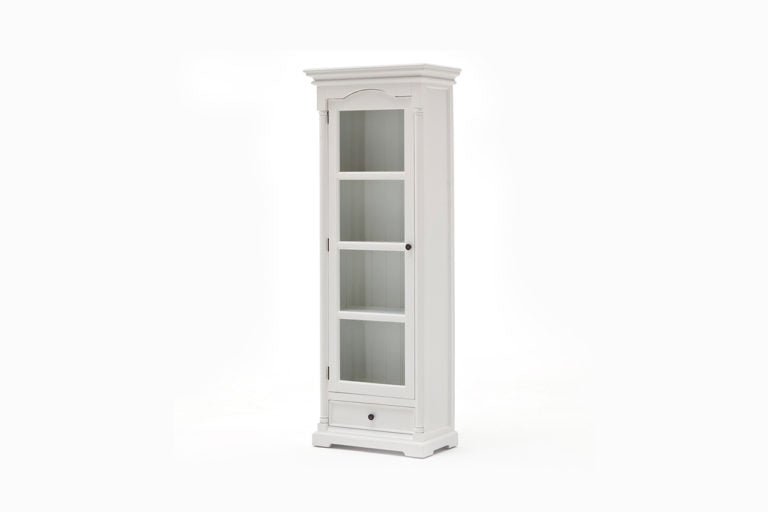 There are some designs that work in a multitude of ways but this glass cabinet looks its best when it’s used as intended – to display. With traditional features, from the cornice and side panels to the moulding that picture-frames the glass, it really is a piece inspired by the past. In a living area, store decorative accessories, photo frames and a mini book collection, or crockery, cups and glassware to create a slimline dresser in a kitchen. Style tip: introduce light behind closed doors by displaying a clear vase filled with a string of fairy lights and place it on one of the middle two shelves.