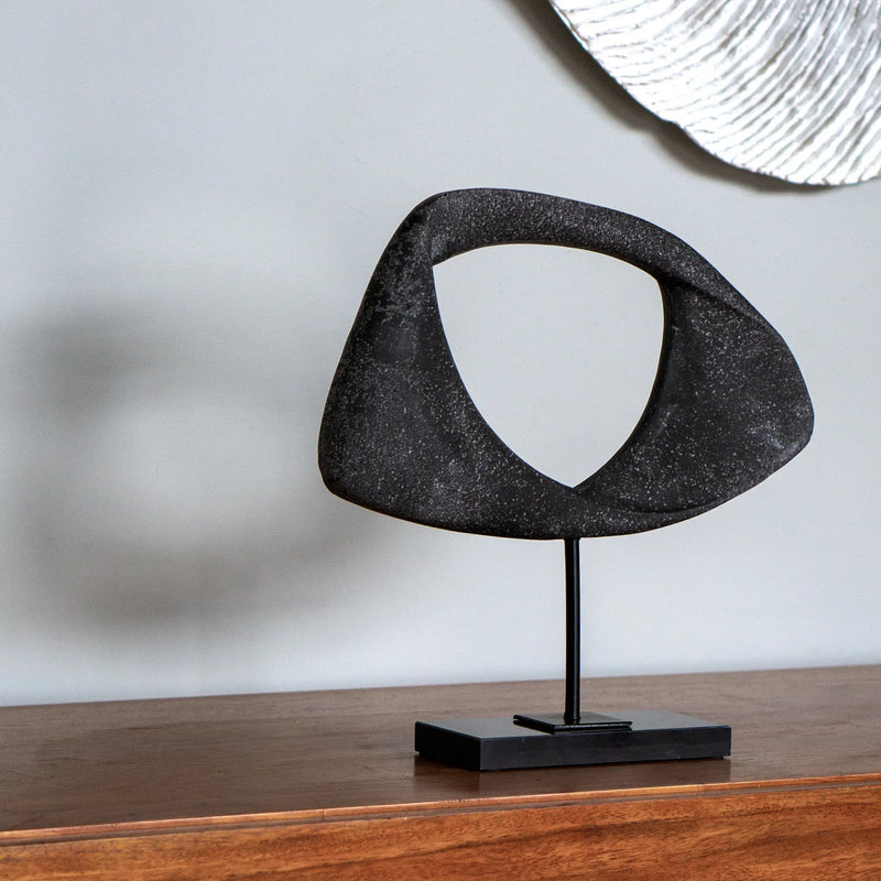 Our handcrafted collection of 'stone' sculptures features a modern shape, color and texture. Each contemporary organic form is produced by combining granite stone powder and resin. Group with our Athena Sculptures for a larger, striking display. The sculpture ships separate from the marble base, assembly required. Indoor only.