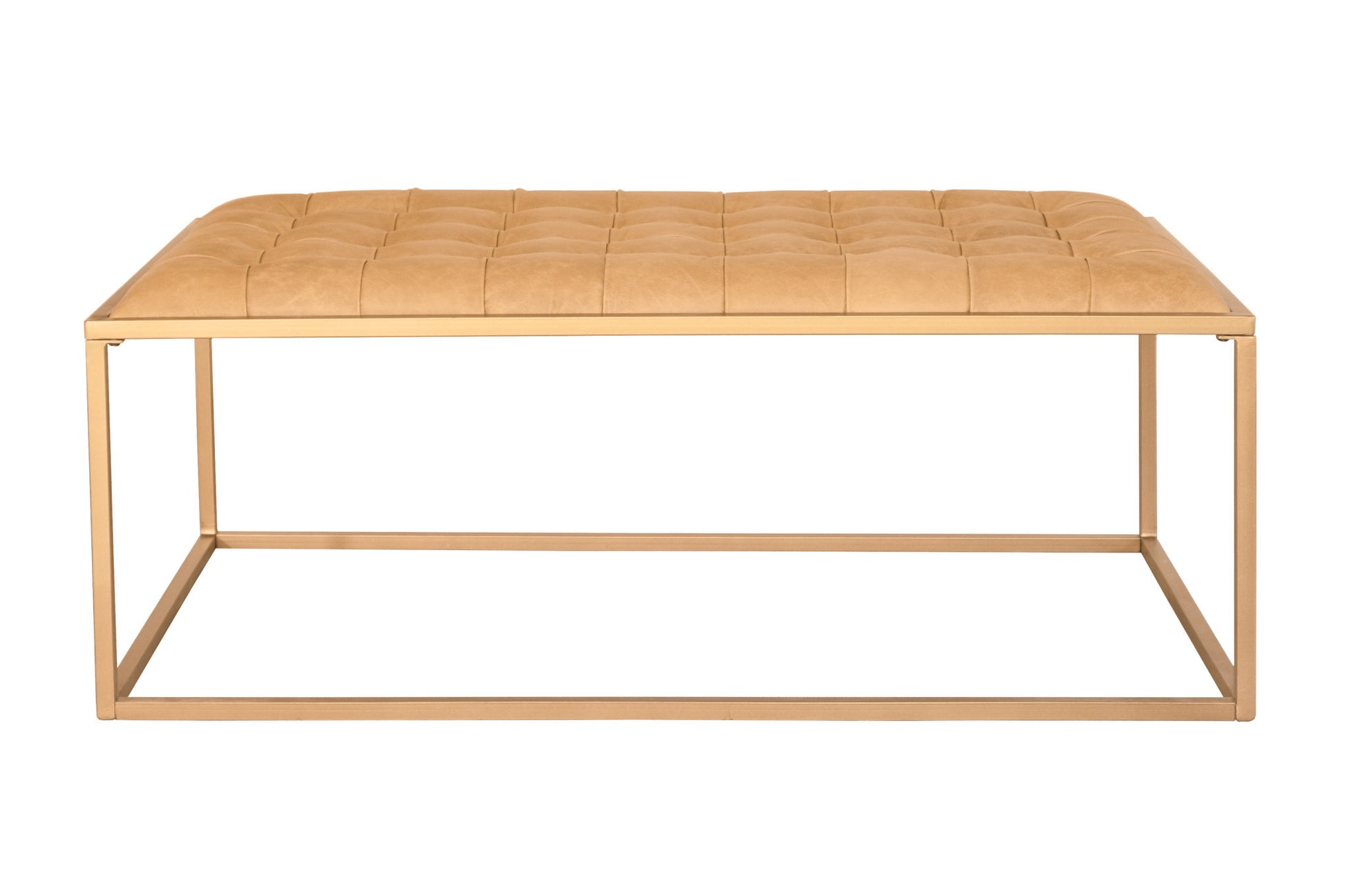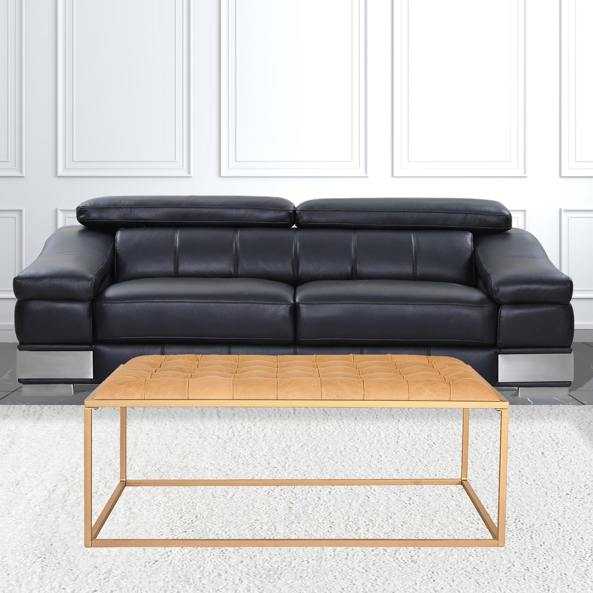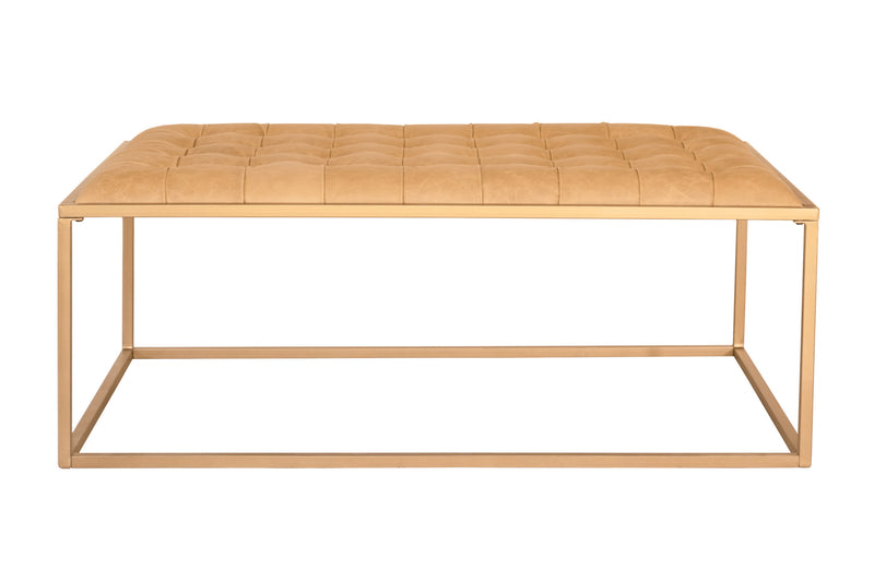 Make a statement with the 48" gold and brown leather rectangular coffee table and infuse a dash of character and personality into your space. Quality construction from the gold iron base combines with brown leather of the top to give this table a fresh and updated look. This classic rectangular table will be a great accent in any room It has a fresh design that will definitely breathe some fresh air into your interior. This coffee table is the sturdy, reliable and stylish answer to your living room needs. 18" H x 48" W x 28" D