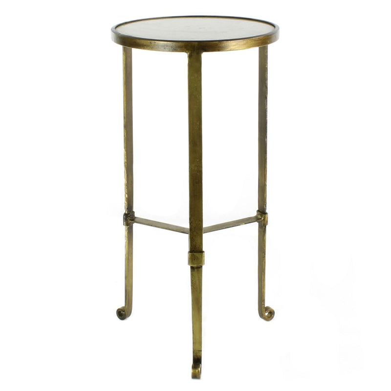 The perfect way to add some utility and design to your home, this Gold and White Marble Top Table will be a great purchase. The base of this table has a simple three legged design with an axel connecting them in the middle. This base is made from metal and has a gold colored finish on it. The table top is a round slab of white marble which is encased in a gold metal frame. This minimal table will work with any interior style you already have in your home owing to its neutral colorway and simple design. 24" H x 12" W x 12" D