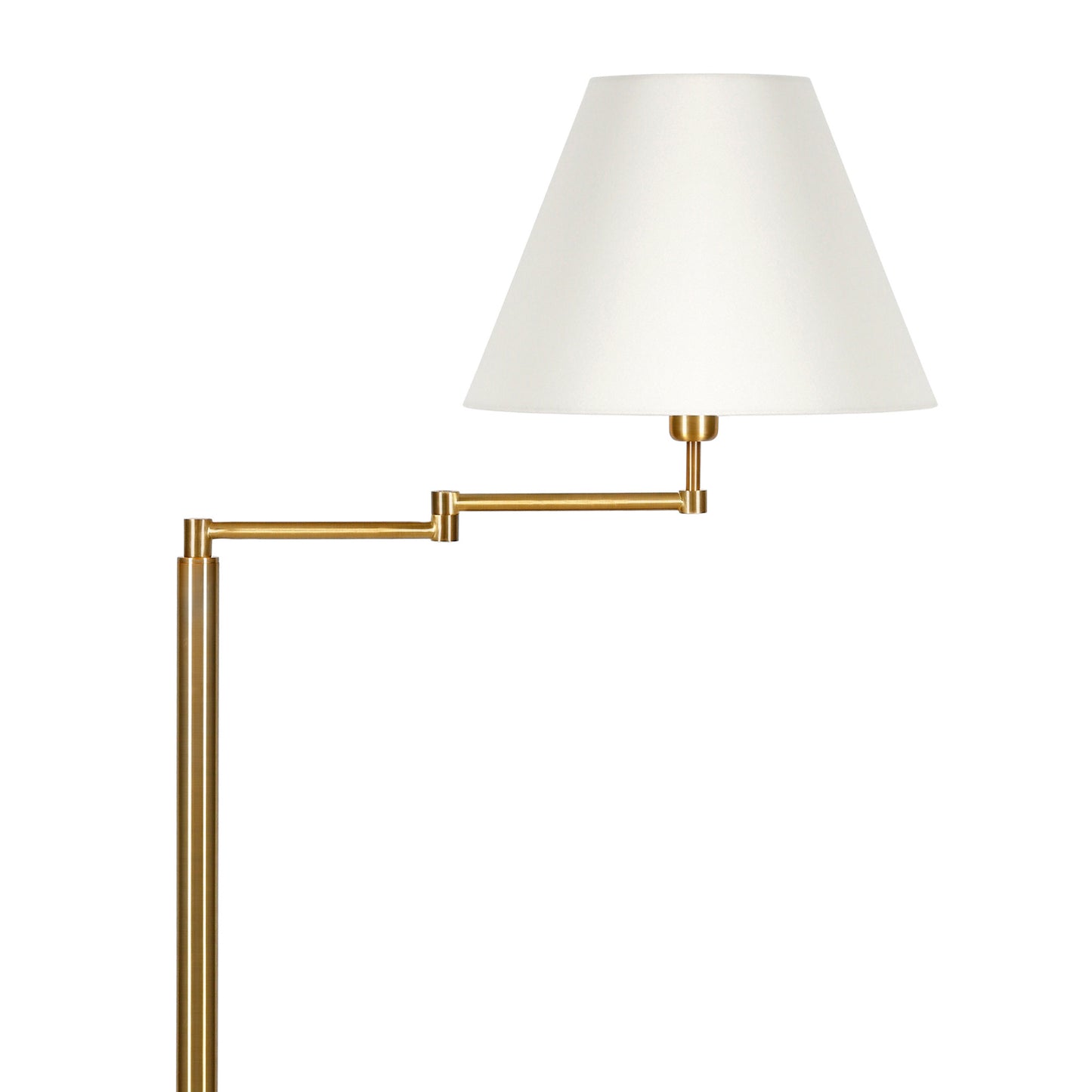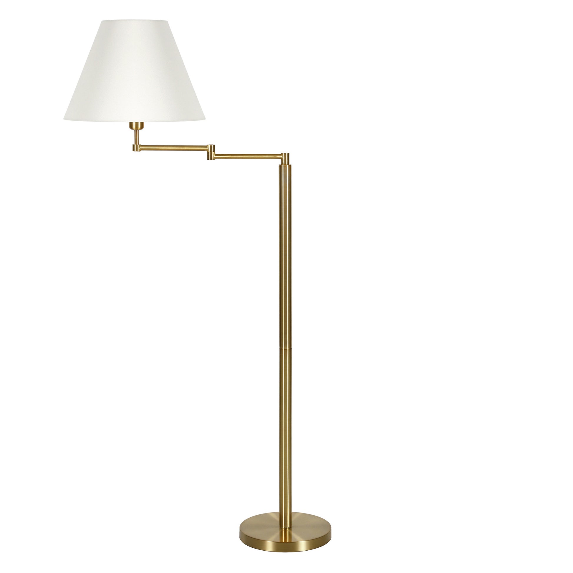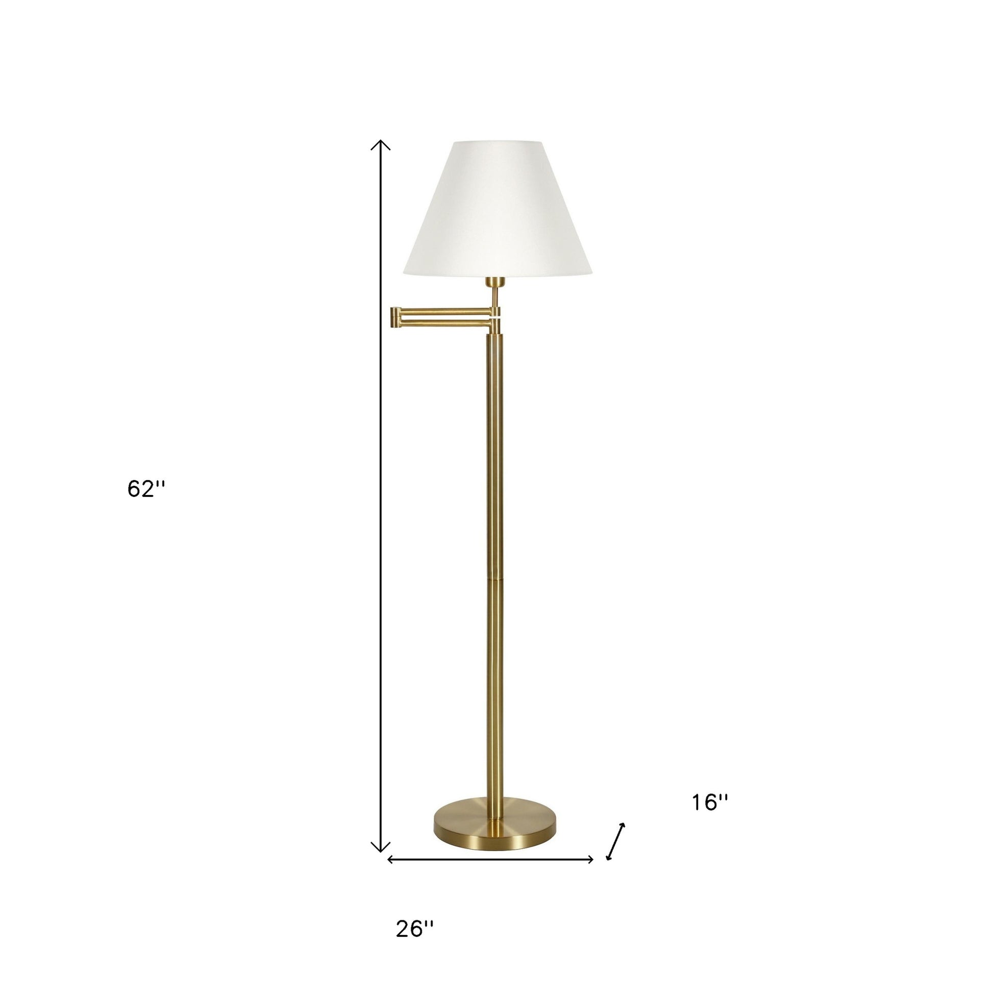 Gold And White Swing Arm Floor Lamp With White Fabric Empire Shade By Homeroots