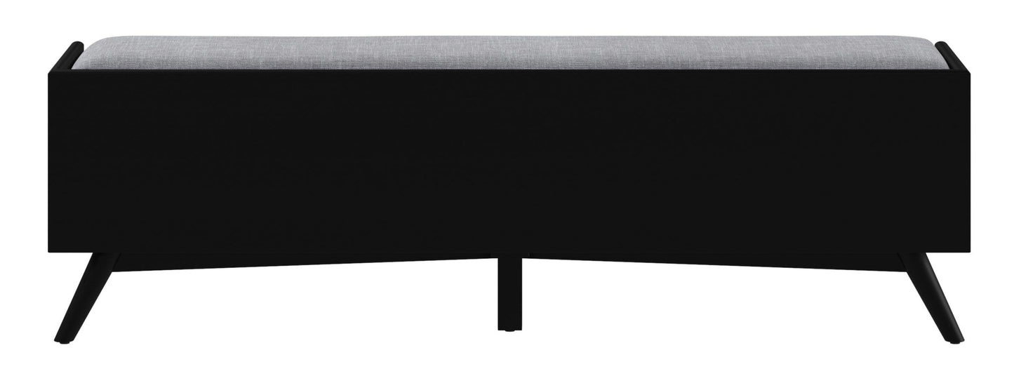Practicality and fashion mix together with this handy 59-inch gray and black fabric upholstered storage bench with drawers. The gray upholstery top of this bench is a nice contrast to the high quality, black solid wood of the base. Expertly upholstered with padding in a soft solid color polyester blend, this bench is as comfortable as it is good looking. This multi-function bench features drawers in addition to seating to help keep your space neat and tidy. Adding this bench to the end of your bed is a great idea to help you get ready in the morning. Easy to blend into most any room, a bench is a way to add a good looking accent to your space that can also be practical and useful. 18.5-inch h x 59-inch w x 15-inch d