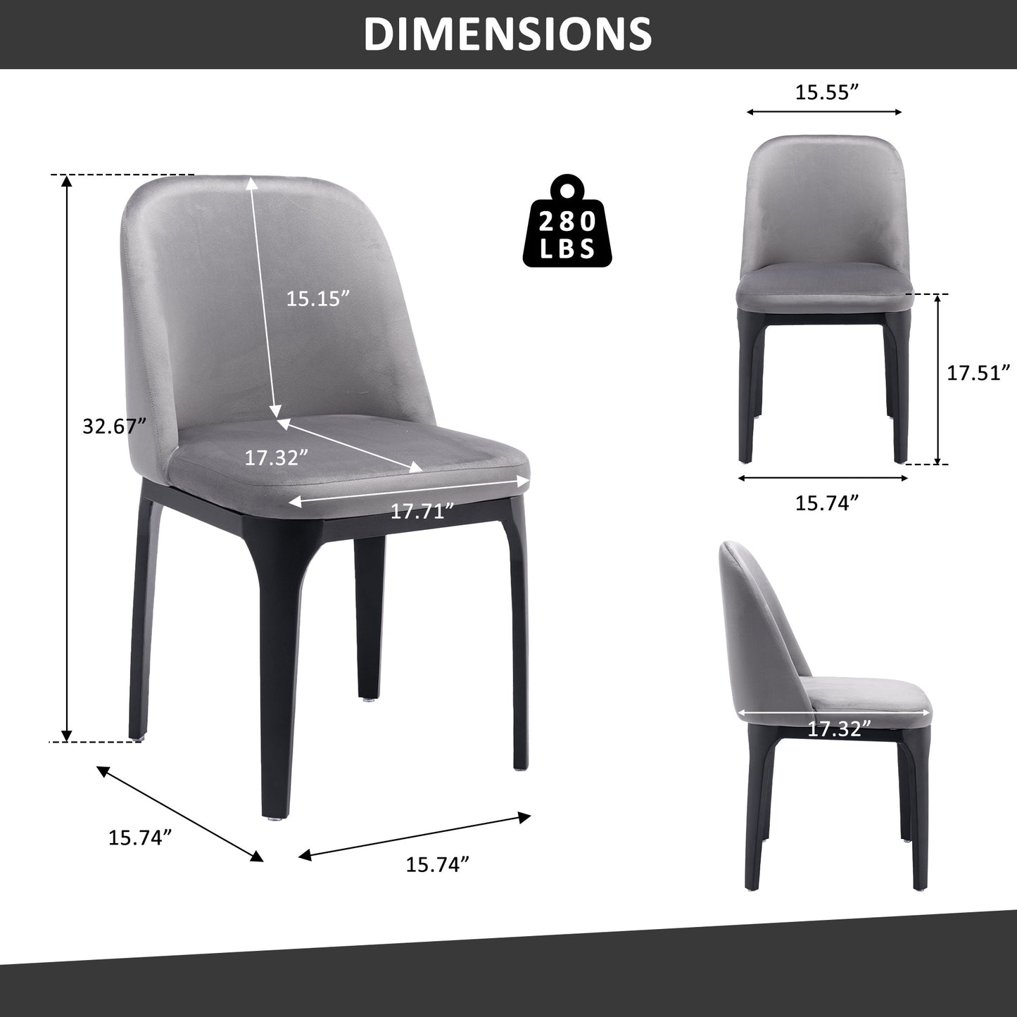 Make your dining room stand out with the gray and black upholstered velvet dining side chair. This armless chair has a sleek silhouette making it ideal for seating around the table but can also double as an accent chair. Complete with solid back, this chair not only looks good but is comfortable. Dining chairs are a great way to compliment your kitchen or dining room but can also be used in the foyer, hallway, or any room you might need extra seating. 32.67-inch H x 15.74-inch W x 15.74-inch D