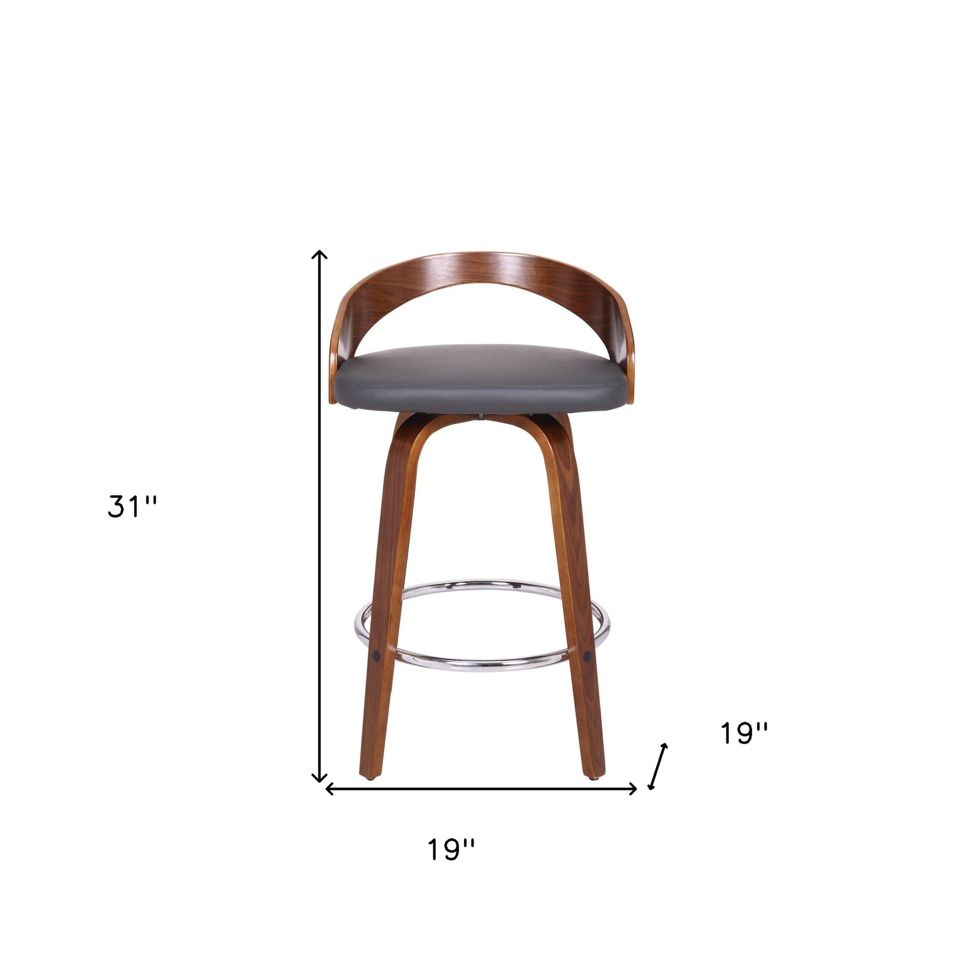 Gray and Brown Faux Leather and Iron Low Back Counter Height Swivel Bar Chair By Homeroots