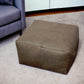 | Soft and luxurious brownish gray genuine leather ottoman with stylish contrast stitching. |
