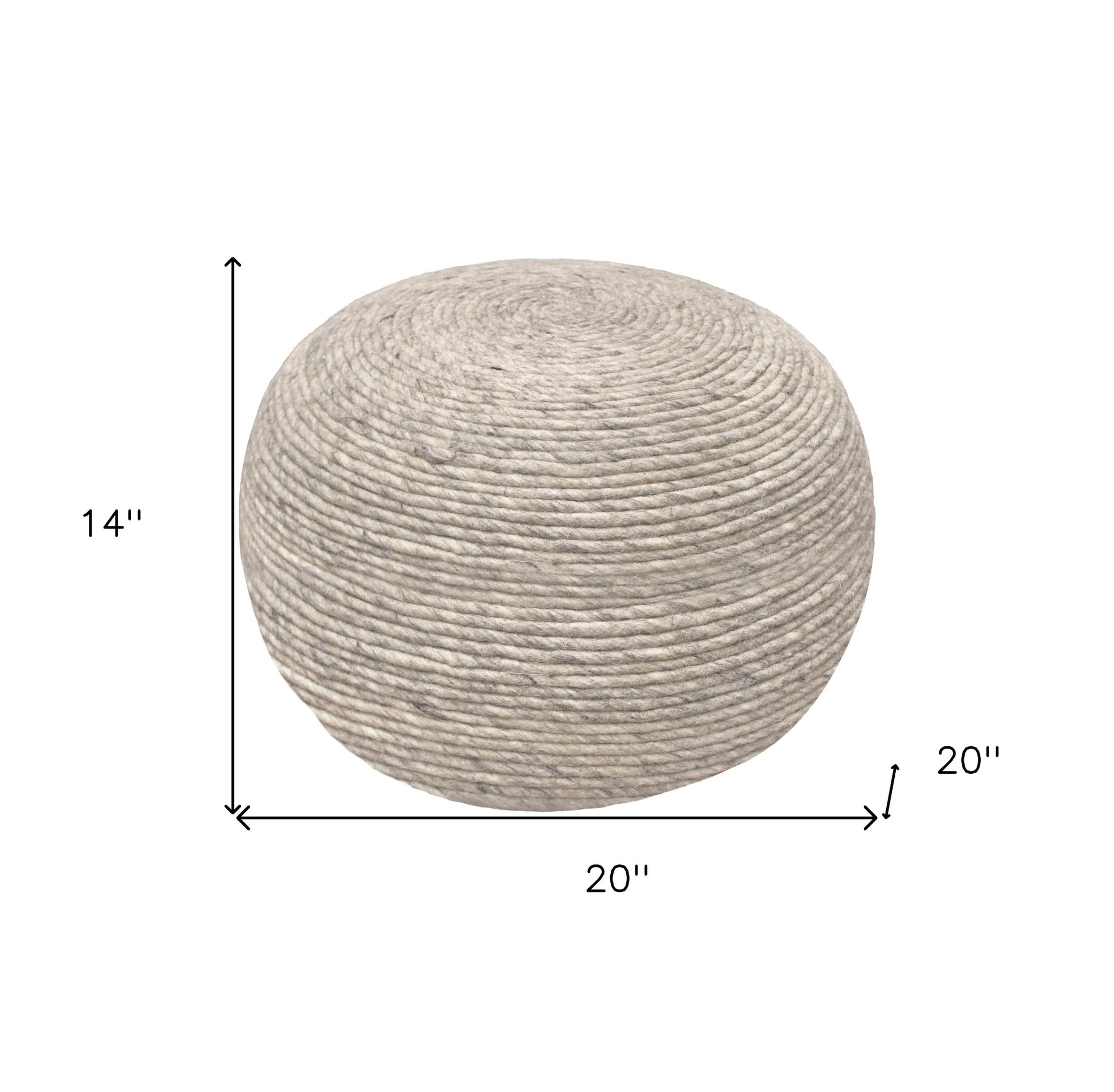Gray Wool Round Ribbed Pouf Ottoman By Homeroots