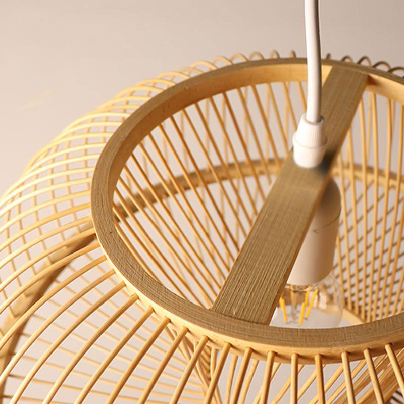 Hand Woven Bamboo Wicker Rattan Round Line Pendant Light By Artisan Living