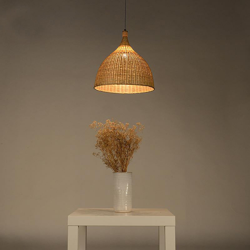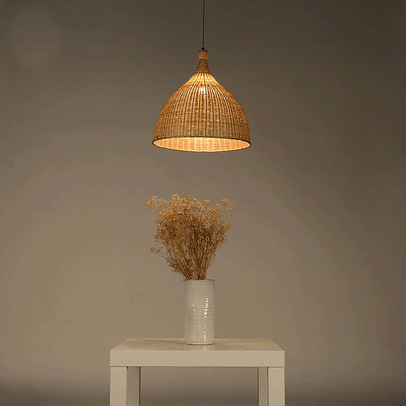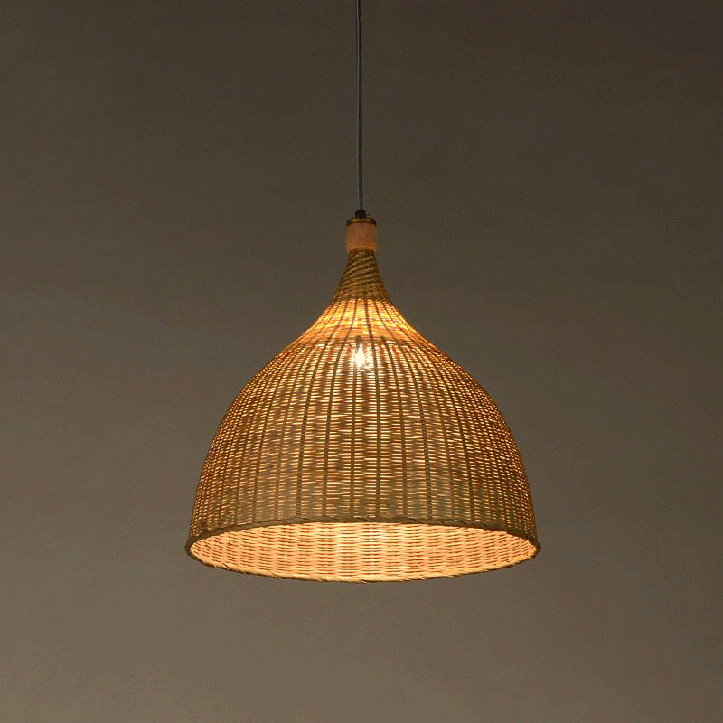 Handmade Bamboo Rattan Round Basket Shade Pendant Light Fixture Rustic Asian Country Japanese Lamp Design Home Dining Table Room.