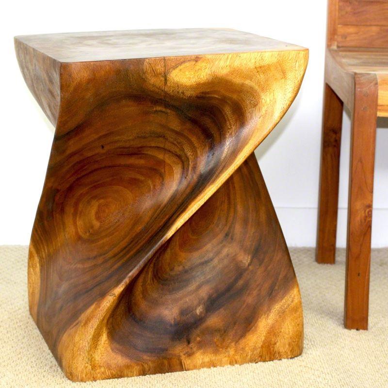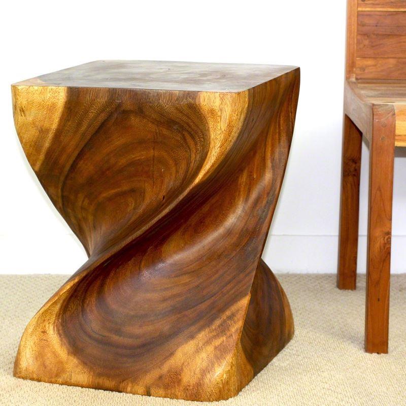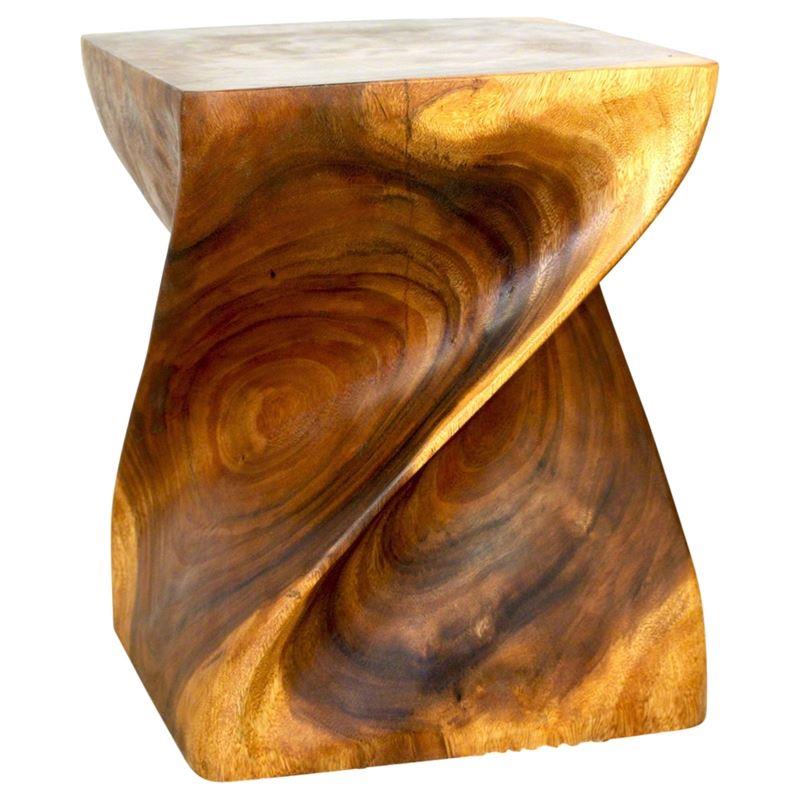 Life is already cluttered with enough drama and commotion. Revel in the simplistic beauty of the Big Twist End Table. Embrace the sense of calm it exudes. Admire the deceptively easy design. Each is hand carved - no two are alike. This elegant piece with Walnut can serve as an end table, display stand, or a stool for last minute seating.
