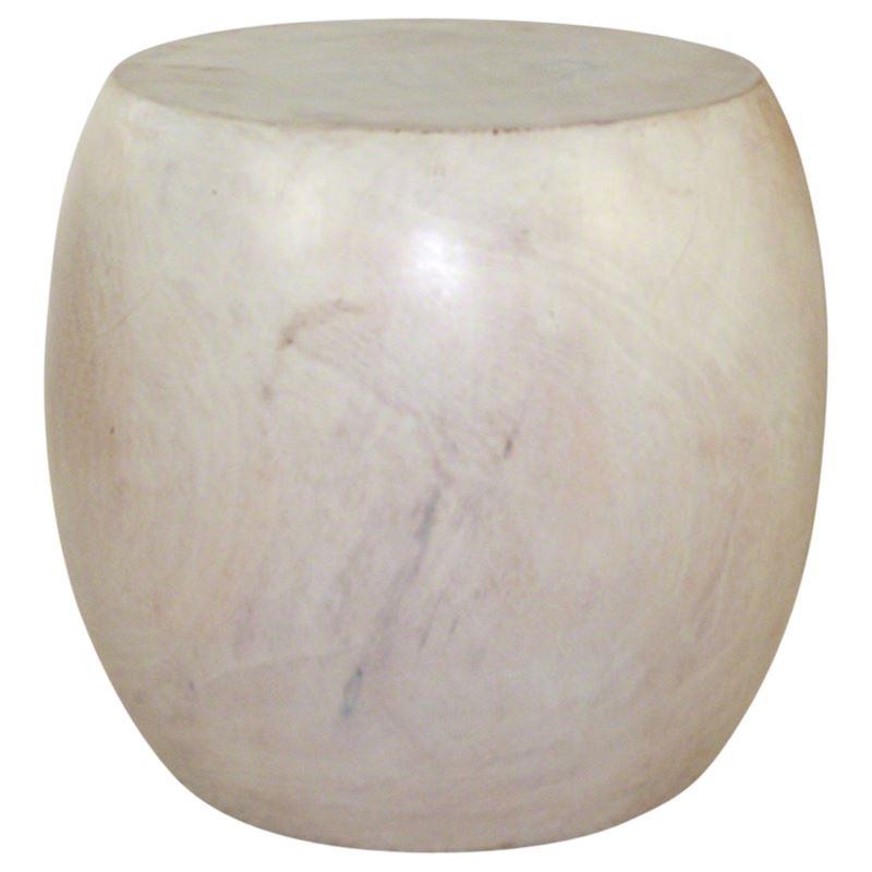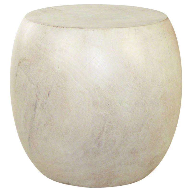 A stool that is both an element for seating or in use as a table. Made from hard to find "Wild Jungle" Mango wood this oversized stool can serve as seating at a table, a living room stool or ottoman, or even an end or coffee table. Hollow inside it can easily be moved about for multiple uses. Most mango wood comes from fruit bearing mango trees that are past their prime producing period and as such are limited to smaller diameters. While mango trees that grow wild in the jungle reach much larger sizes while not bearing much edible fruit.