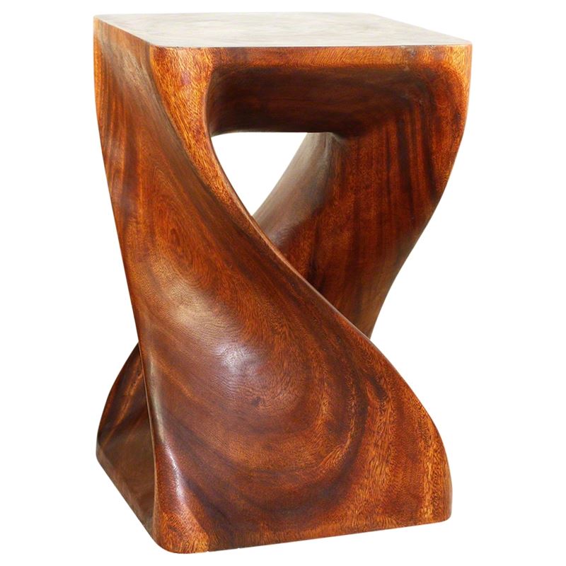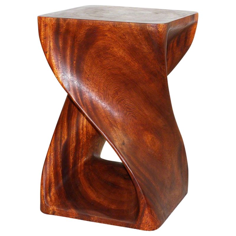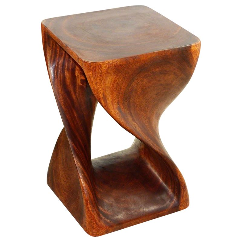 The beauty of our Twist-side stool end table lies in its simplicity. Its bold, yet gentle. Rustic, yet refined. Elegant one-quarter twists support this original piece in wider widths, which can serve as an end table, display stand or stool for last-minute extra seating. Natures creations are always in style; this dramatic accent piece is a stylish complement to both traditional and contemporary settings. Finished in rich Cherry Intensive Oil with vibrant reddish brown tones.