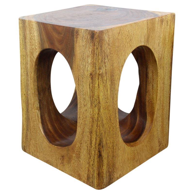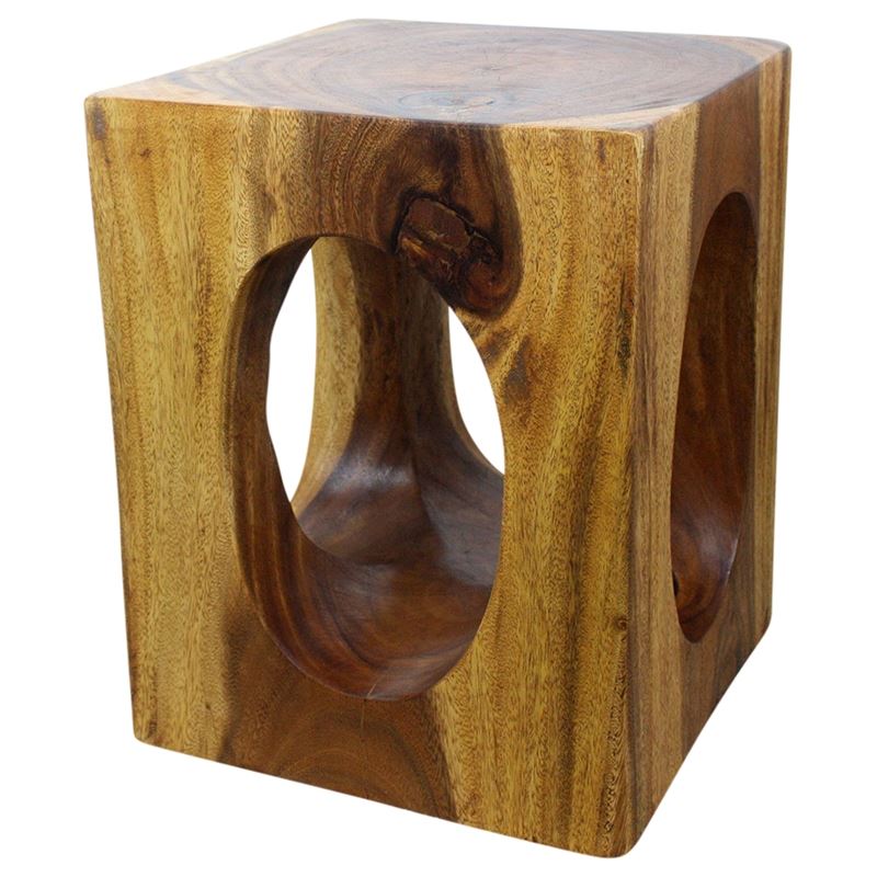 Who can resist the charm of the Windows Cube End Table? A visually interesting piece that makes a bold statement. Cutouts expose the inner beauty of the wood. Each is hand carved and no two are alike. Can serve as an end table, display stand, or a stool for last minute seating. Nature™s creations are always in style; this dramatic accent piece is a stylish complement to both traditional and contemporary settings.