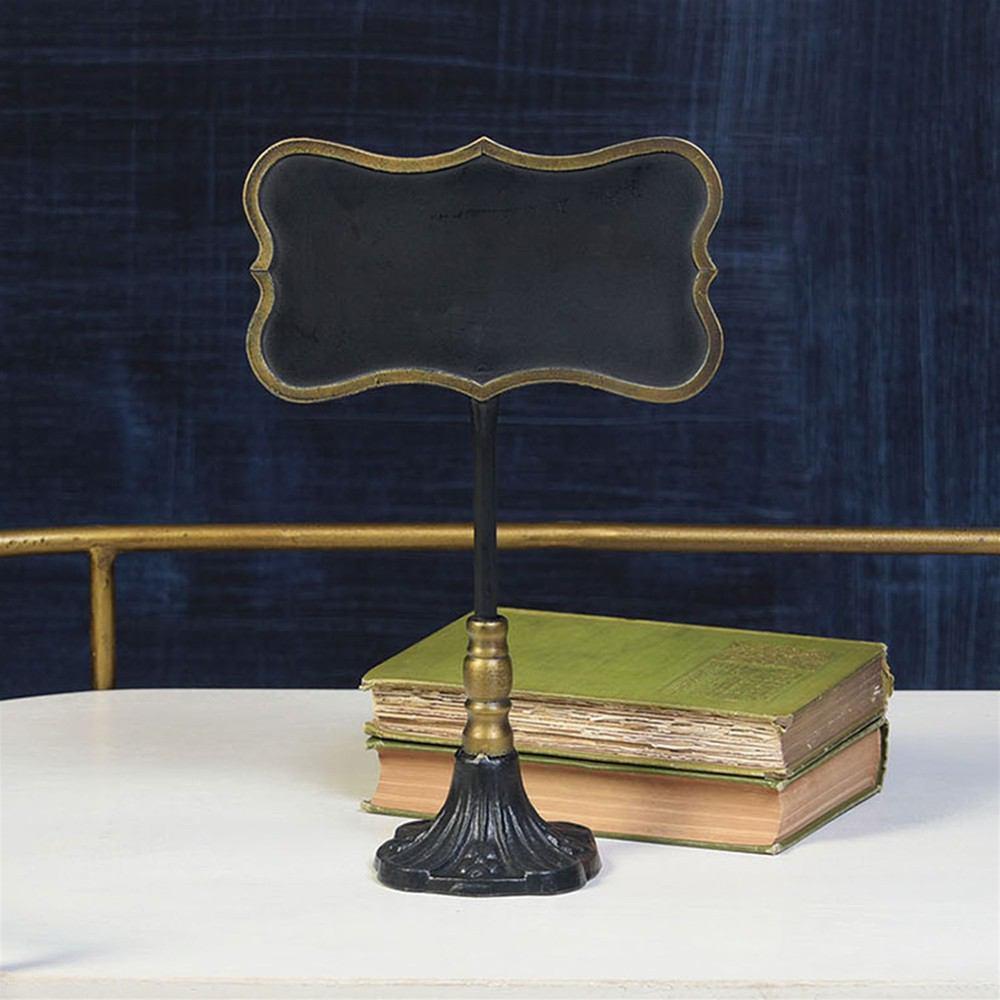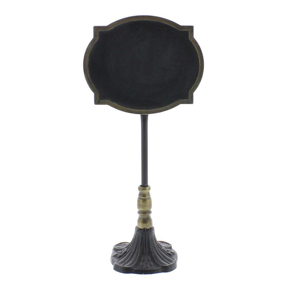Shape a beautiful cheese display or create an elegant table number centerpiece with any one of this trio of standing chalkboards. With sturdy cast iron bases and a surface suitable for chalk or chalk pens these stands provide myriads of options for information.