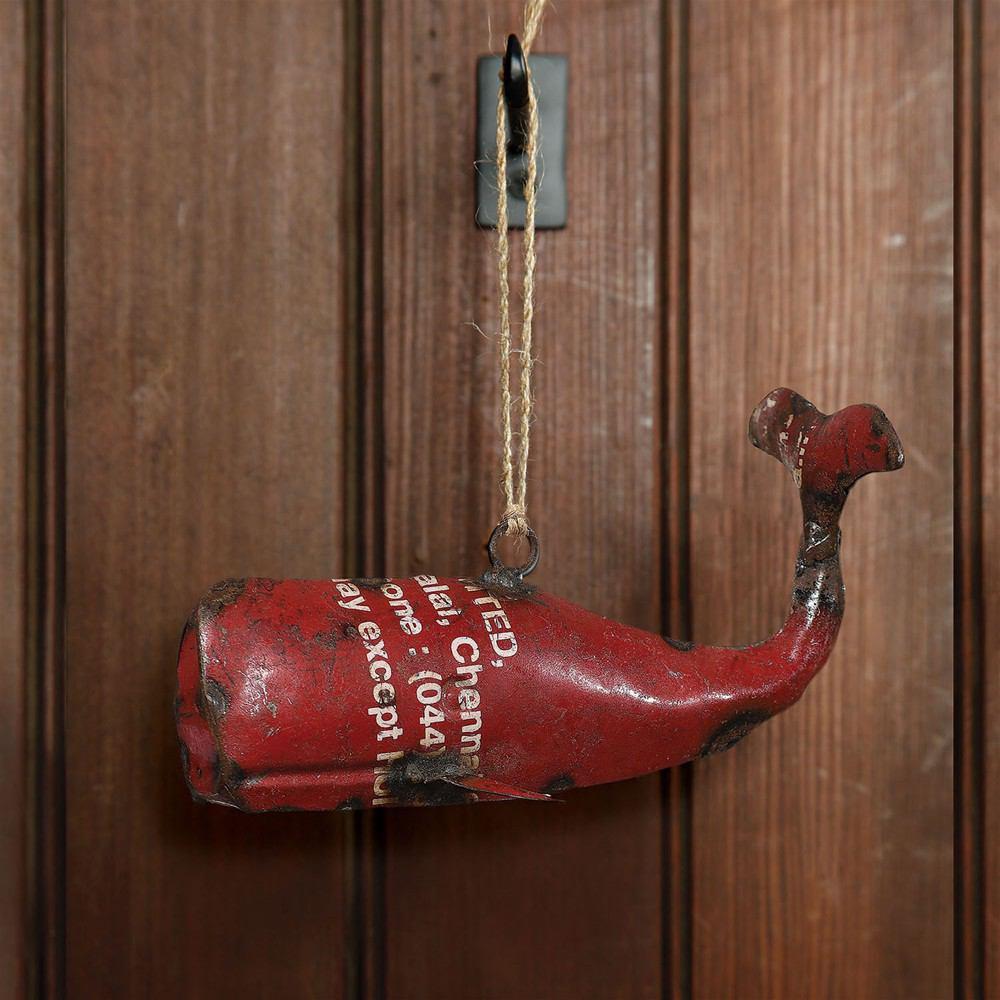 Reclaimed Metal Whale Ornament - Red - Set Of 3 By HomArt