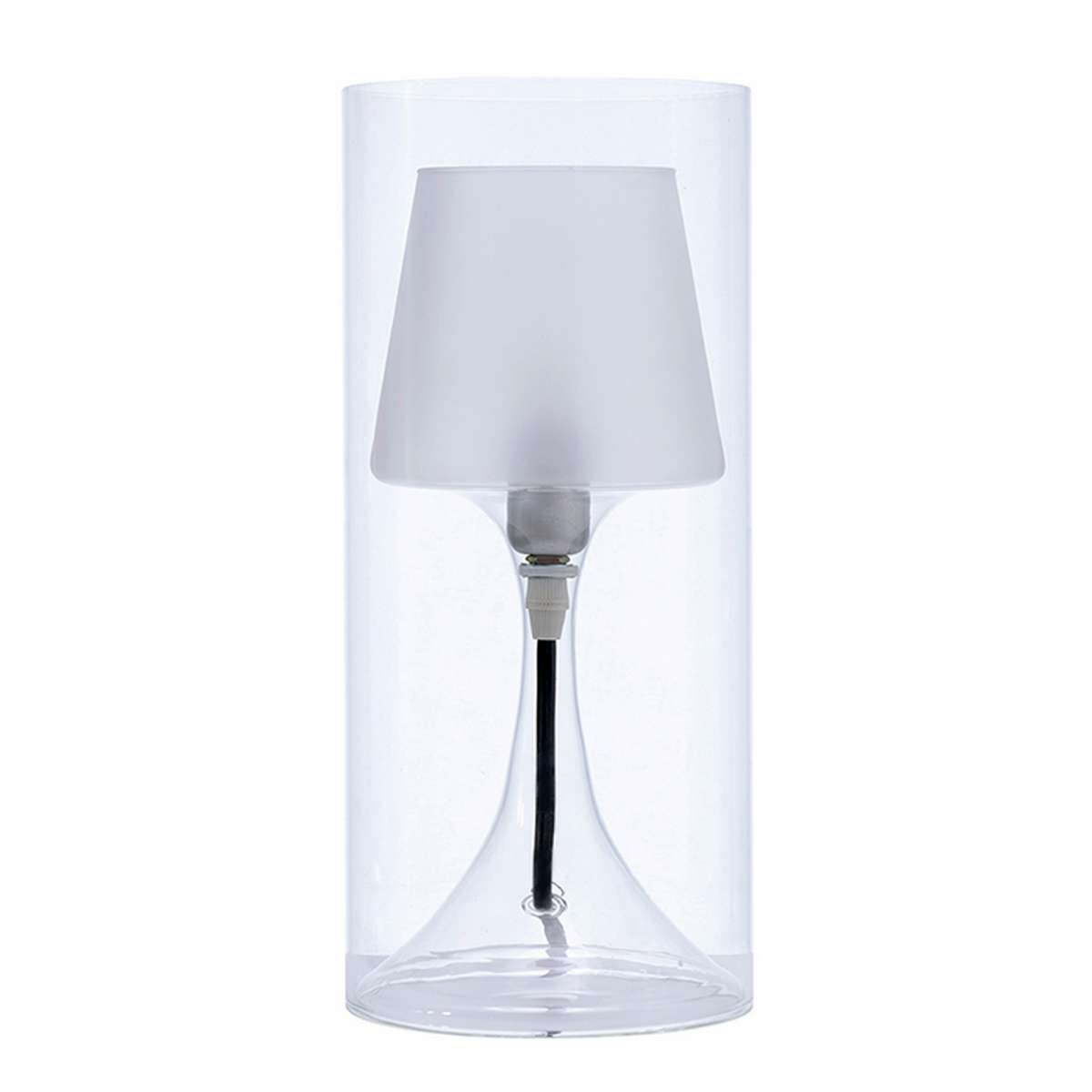 A perfect addition to any living space, this down light table lamp lends a contemporary appeal to your home. Featuring a hurricane design encasing the lamp adds to its distinctive and appealing character. It incorporates a frosted tapered glass shade that exudes sophistication and elegance.