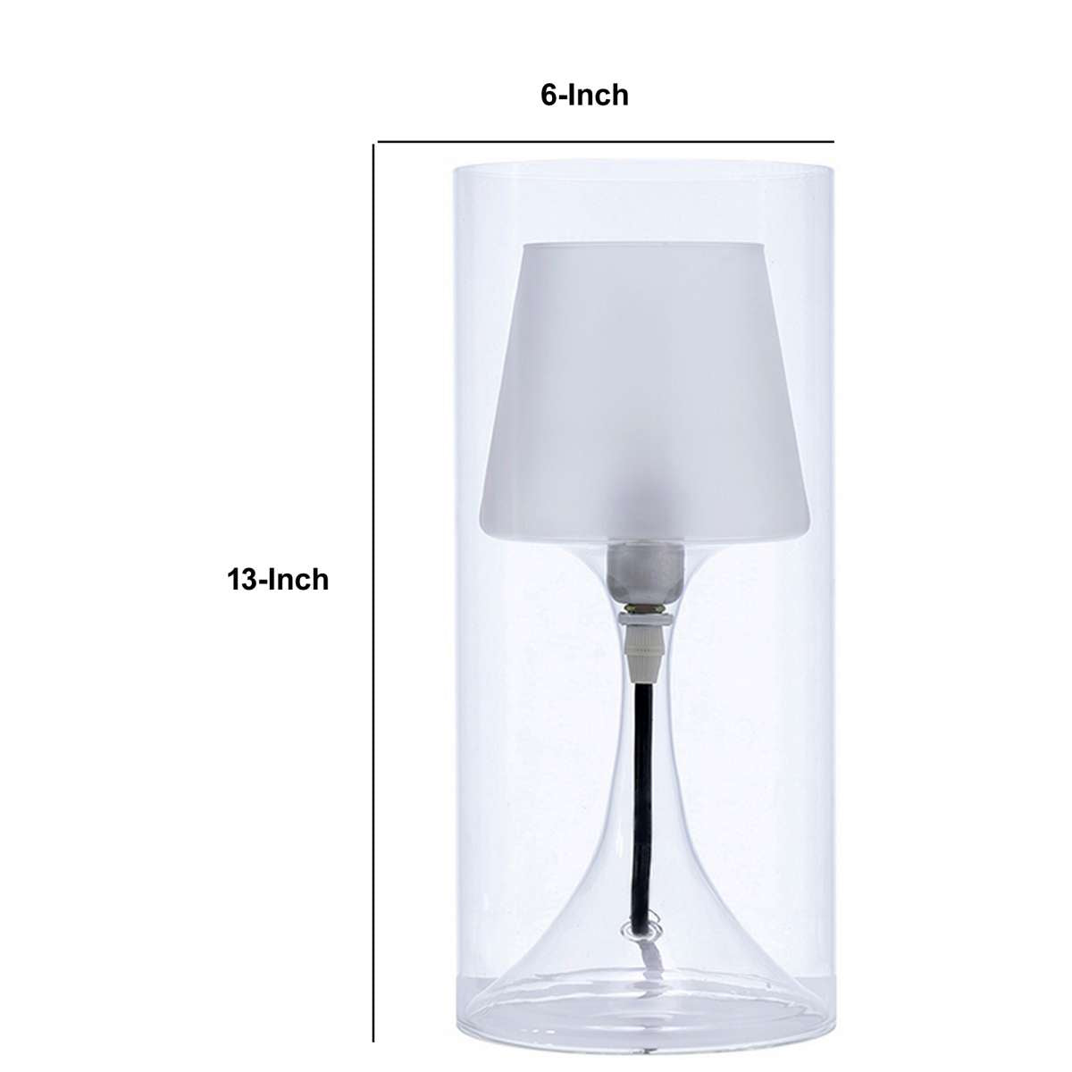 Hurricane Table Lamp With Frosted Glass Shade, Clear By Benzara