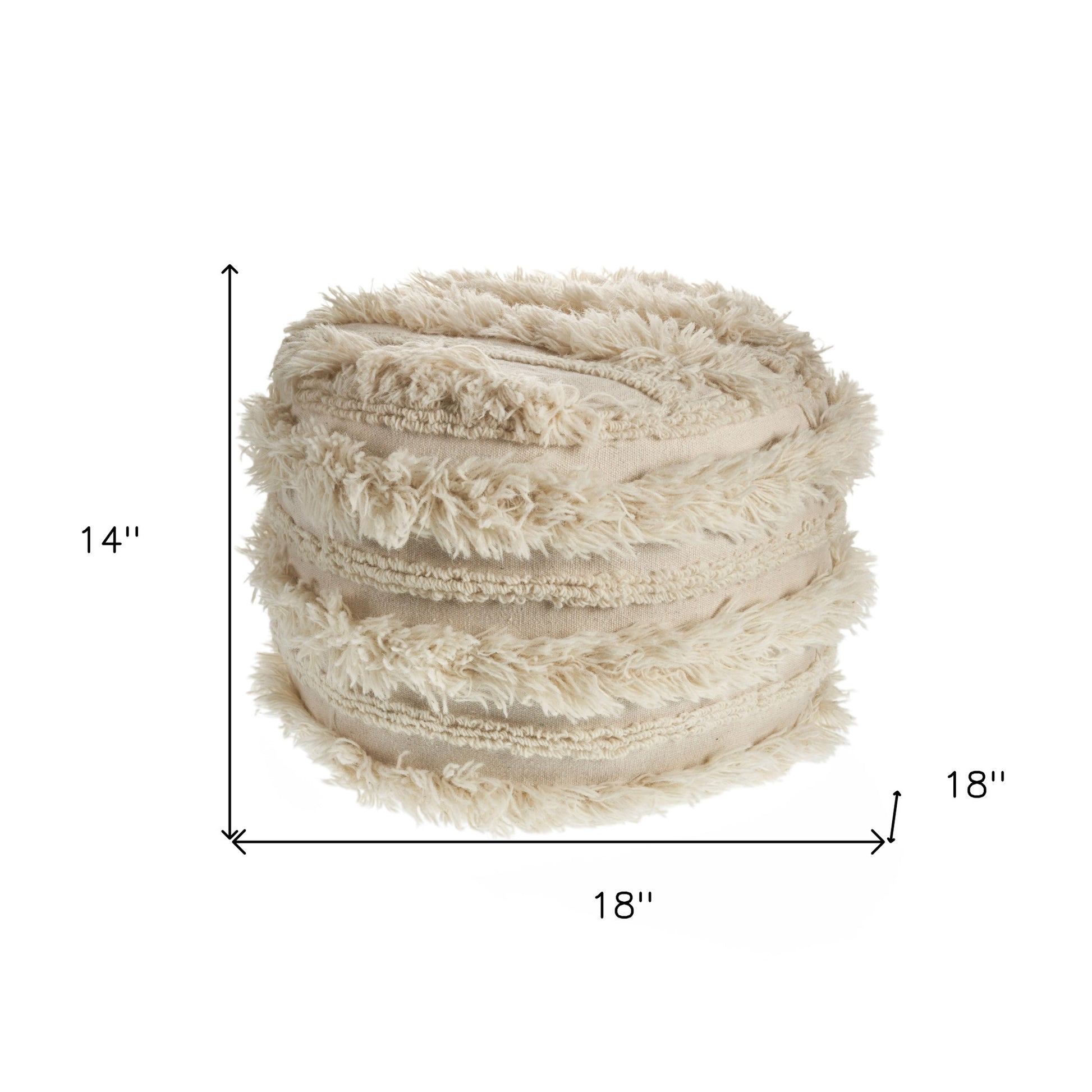 Optimize your space and add some charm to your room with the 18-inch ivory 100% cotton ottoman. Ottomans are multi-functional additions to your space that add fashion and practical value. 14-inch H x 18-inch W x 18-inch D
