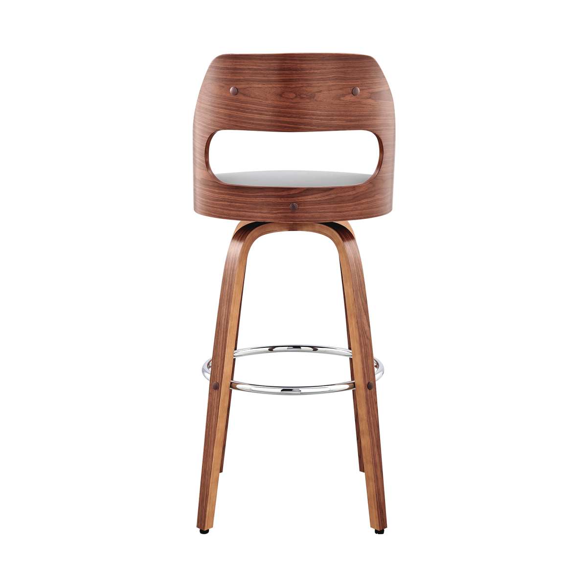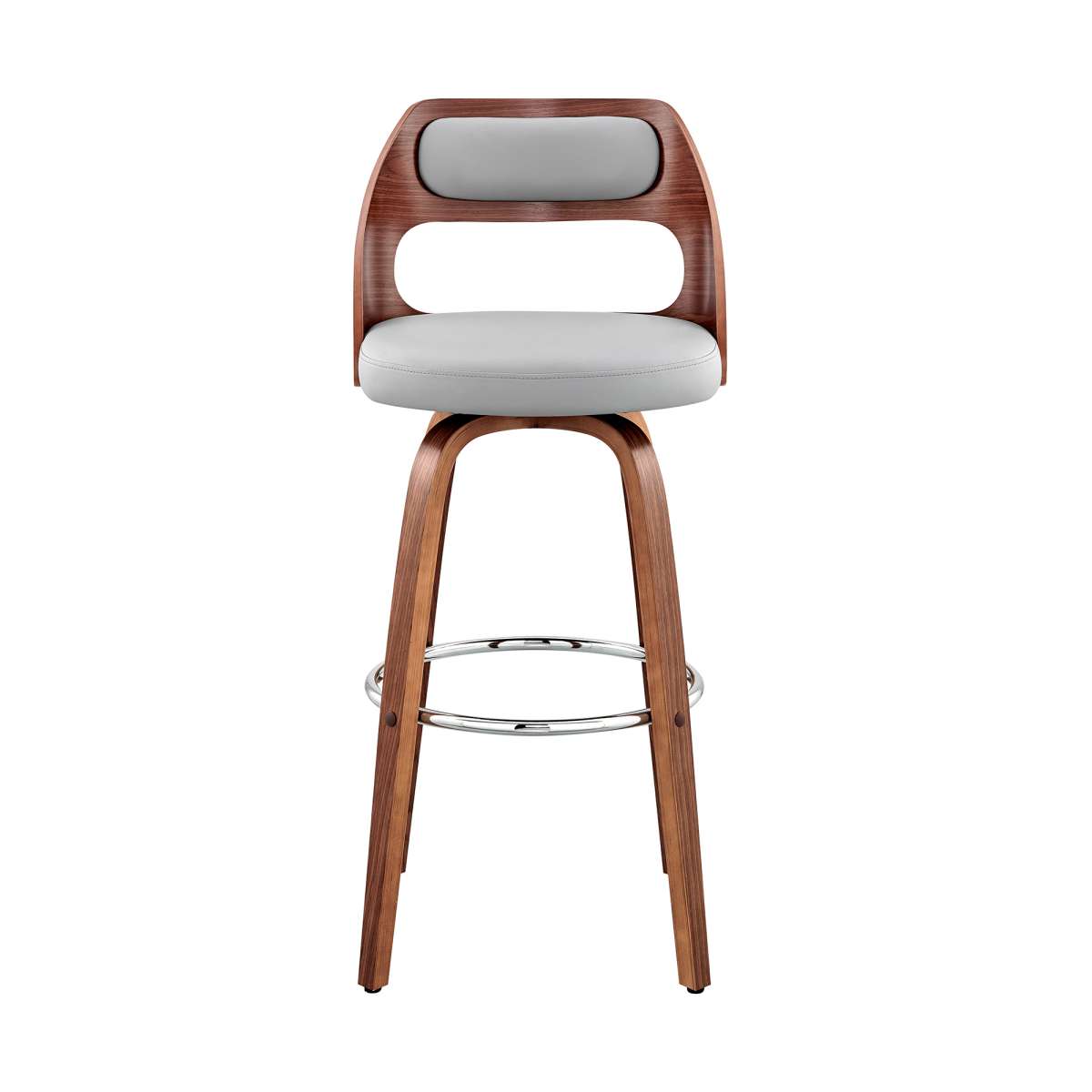 The Julius 26" Gray Faux Leather and Walnut Wood Bar Stool from Armen Living is the perfect stool to introduce into your already beautiful home. The Julius features a swivel function that allows you to turn 360-degrees, offered for your convenience! The open seat back and wide seat cushion gives you exceptional room and comfort. The Julius frame is crafted to be stable, sturdy, and, strong - also designed with a built-in metal footrest! The Julius is available in your color choice of Gray, cream, or brown faux leather with walnut wood or Gray faux leather with black wood. Product Dimensions: W:18 x D:19 x H:37 x SH:26
