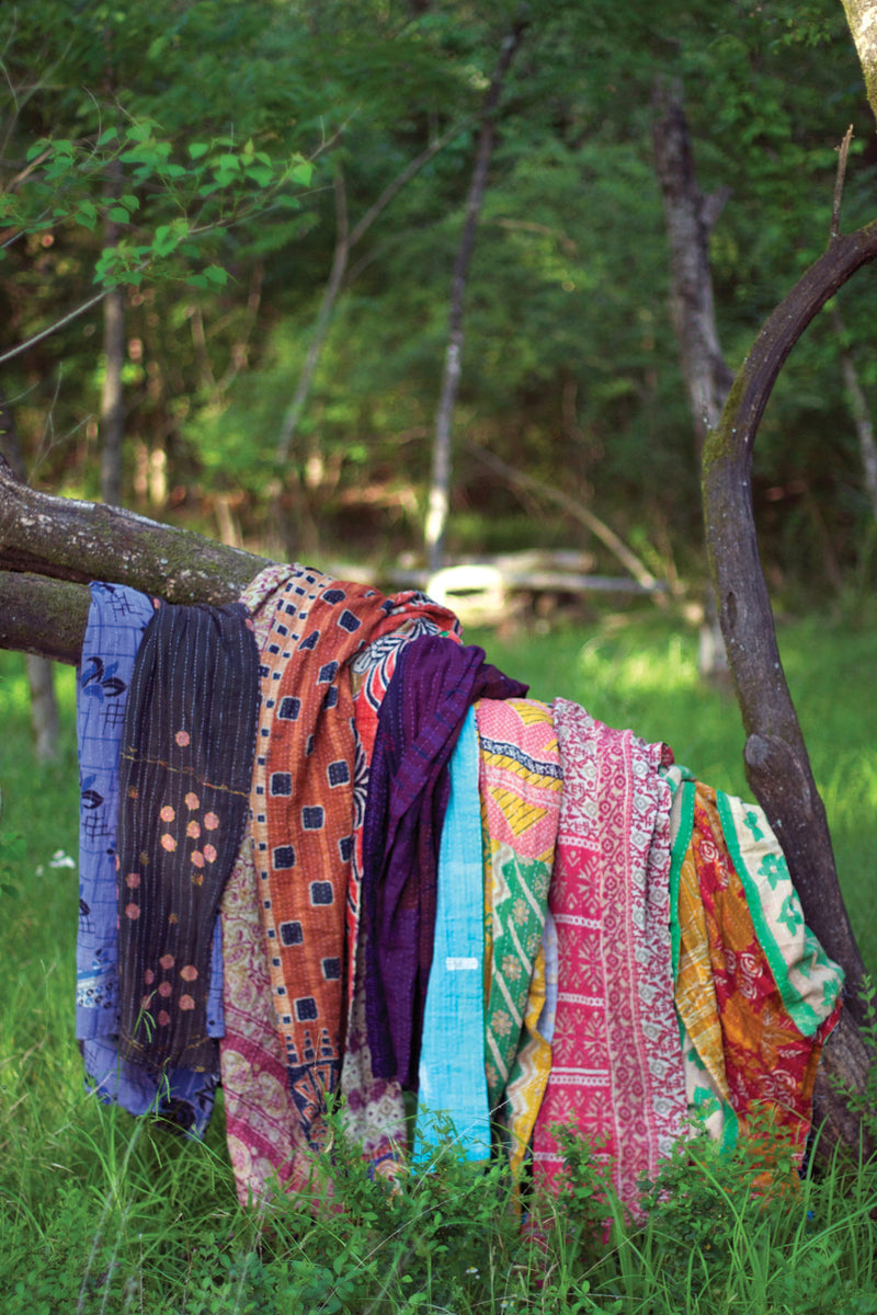 Drape your displays or duvets with these colorful Kantha throws. Each Indian-made throw represents and reflects beautiful craftsmanship, so no two are alike. These delightful drapes come in sets of six.