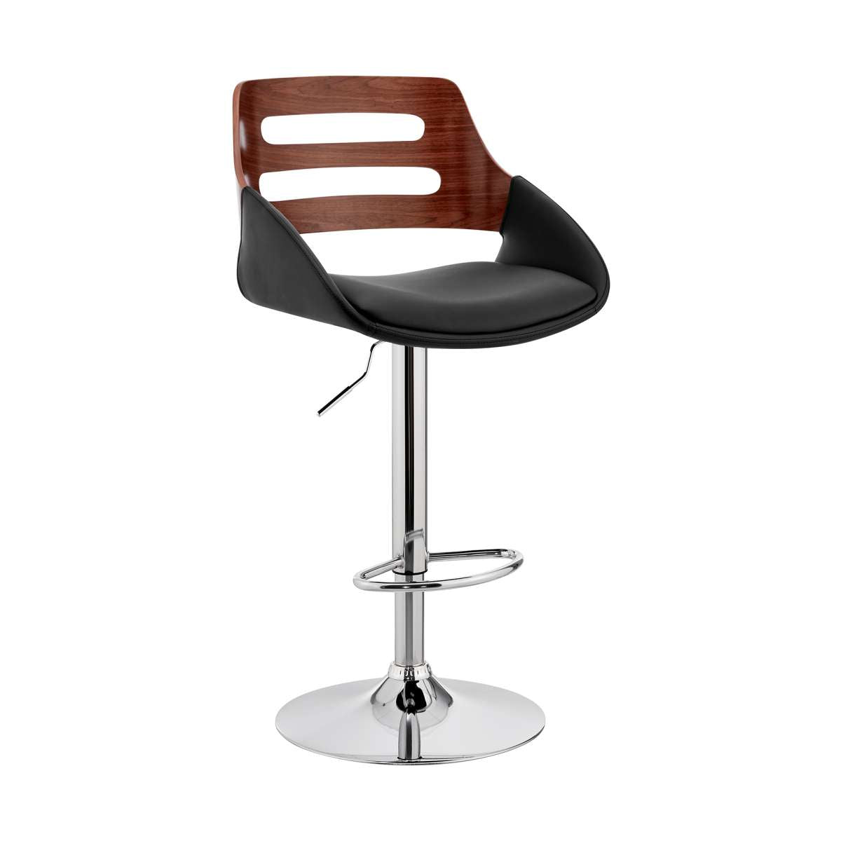 Karter Adjustable Black Faux Leather and Walnut Wood Bar Stool with Chrome Base By Armen Living