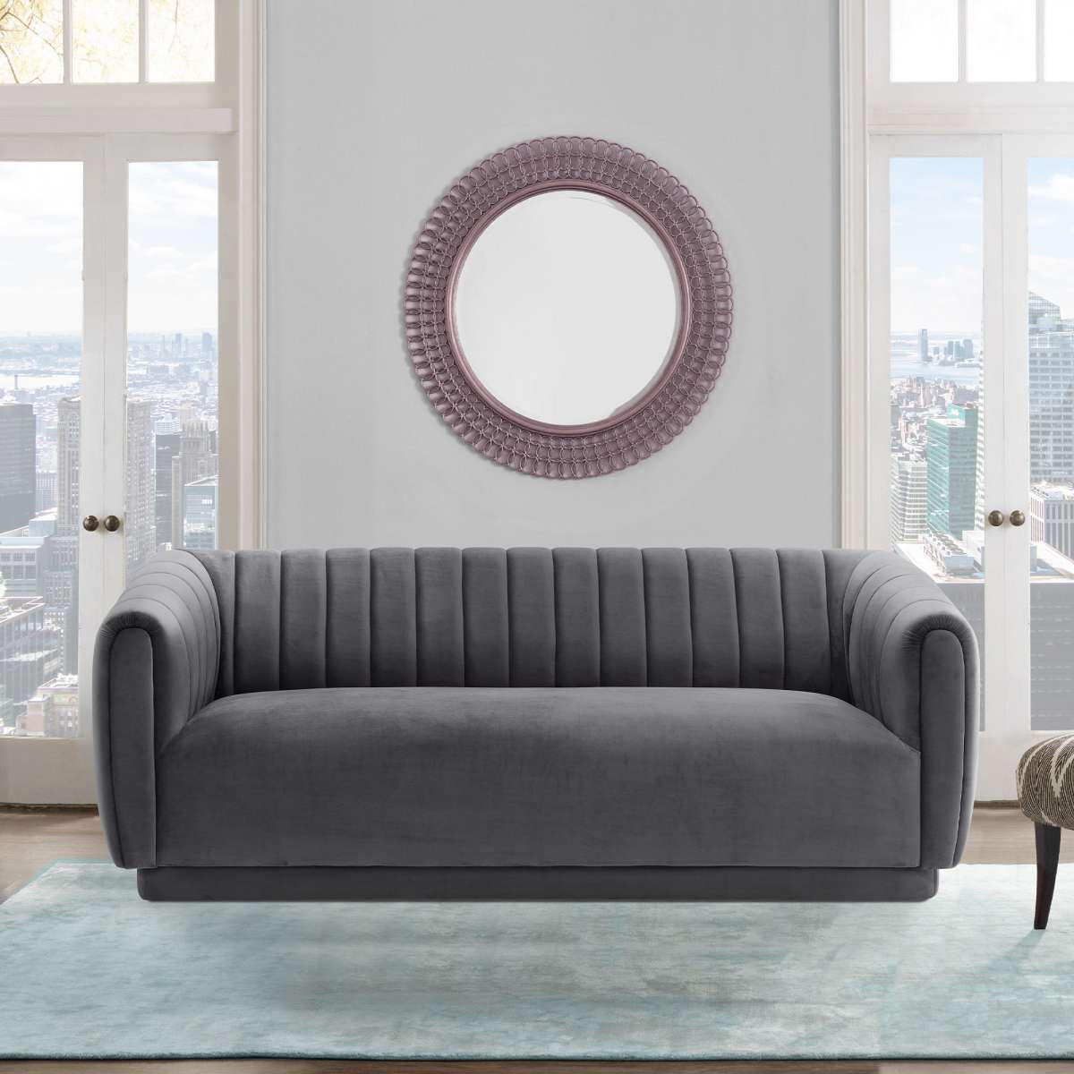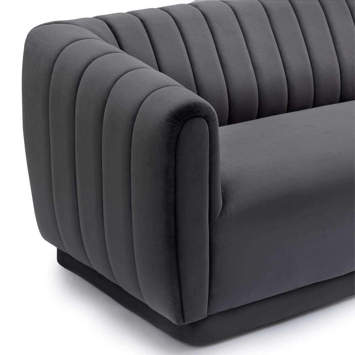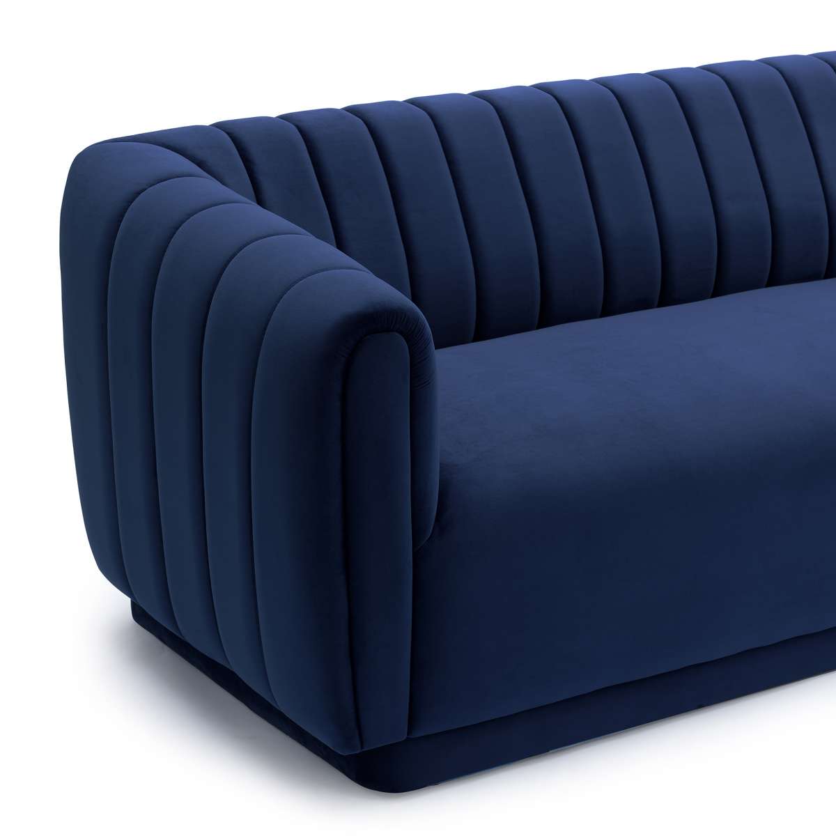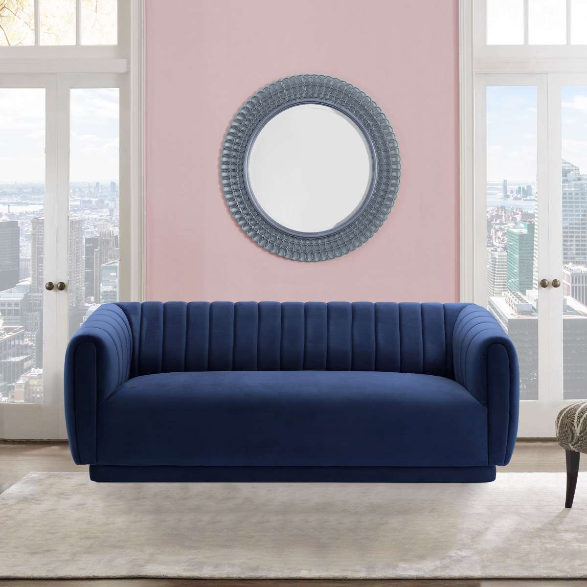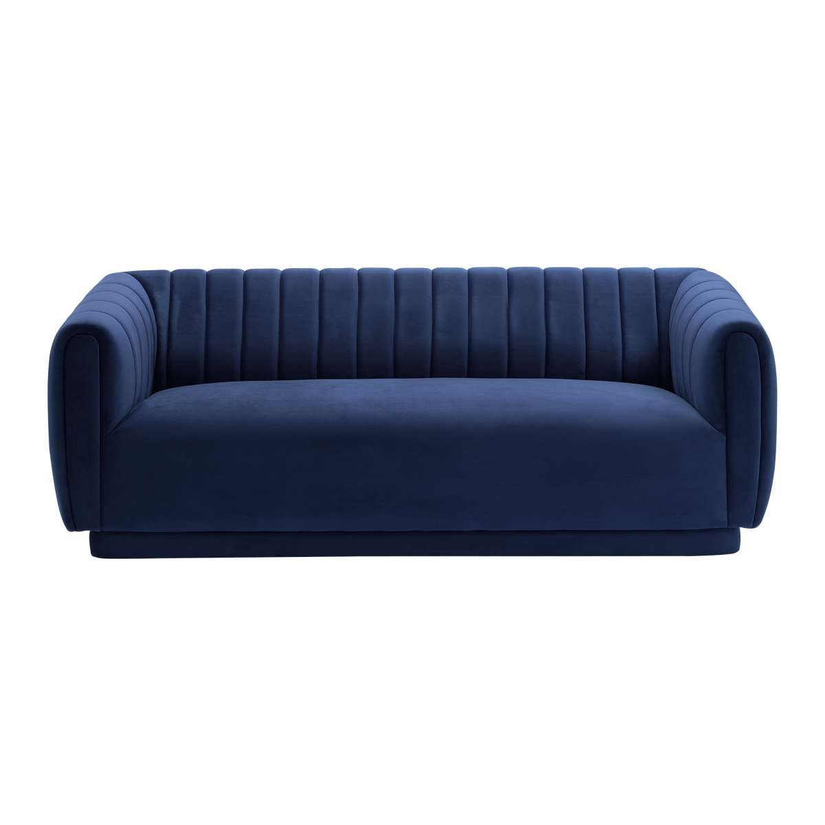 The Armen Living Kinsley Blush Velvet Sofa offers your home a centerpiece of exceptional design. Our three-seater sofa brings your living room a stunning look with its deep channel stitching, velvet upholstery, and round arms. Finished with a low-profile design, this sofa stands as a streamlined statement piece that can change the whole flow of your interior decor, creating an open, glamorous space. From its luxurious velvet upholstery to its chic silhouette, our sofa will bring excellent comfort and style to any room. The Armen Living Kinsley sofa is available in your choice of blush, dark Gray or navy velvet upholstery.