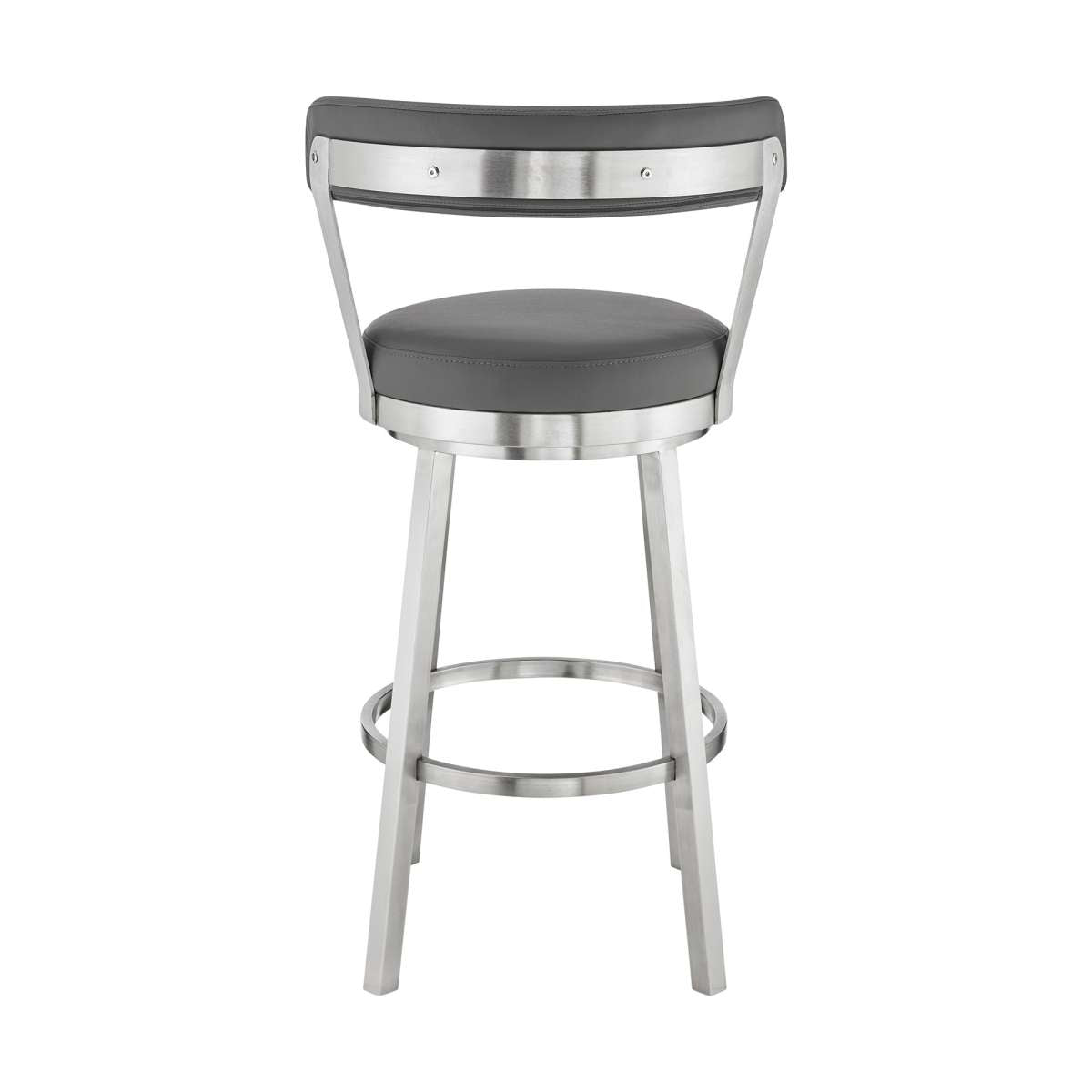 Kobe 30" Bar Height Swivel Bar Stool in Brushed Stainless Steel Finish and Gray Faux Leather By Armen Living