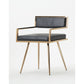 Designed with precision, this magnificent looking leatherette upholstered dining chair will be a perfect addition to your dining area or breakfast nook. Made up of metal frame over which textured leatherette is upholstered, giving this dining chair a classic royal look. This chair also features an open back and arm design providing chair an airy look with utmost comfort. With a graceful look, this chair also features splayed legs in gold finish.