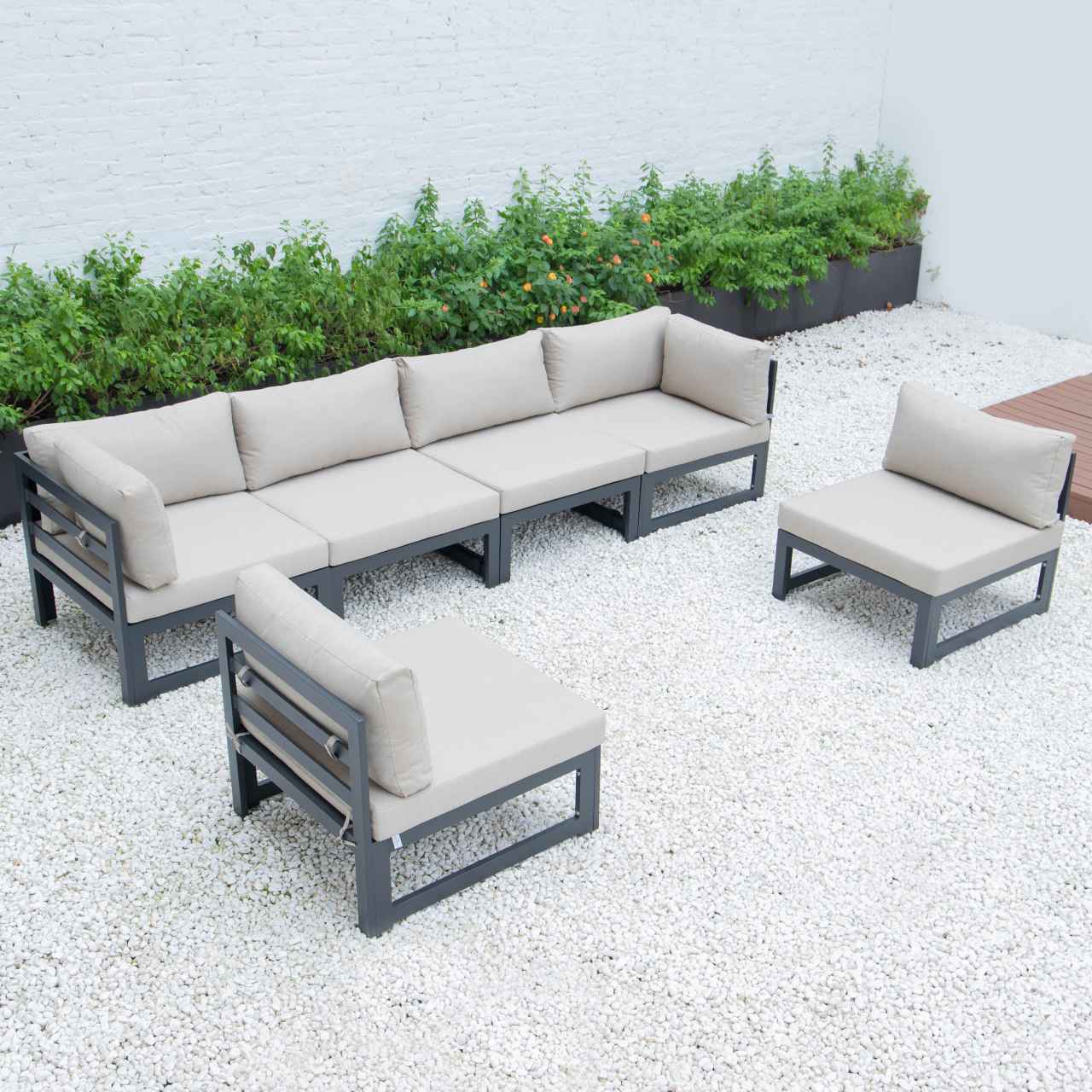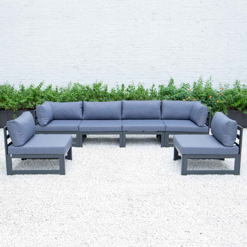 LeisureMod Chelsea 6-Piece Patio Sectional Black Aluminum With Cushions