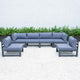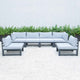 Set up a spot for Fresh air, chilled drinks & warm breezes, whether you're looking to host the neighbors in style or just spread out to enjoy warmer weather there's no better way to extend your living space than with our Chelsea modern outdoor sectional set. We have a professional outdoor design team, focusing on the design of high-quality and weather resistance outdoor sectional sets. The solid structure frame ensures stability and the cushions come with ties lock the cushions for placement where you want them. Sitting enough for six people Shape the sectional in the traditional U-Shape or you can shape it however you like to help you make the most out of your patio or deck.