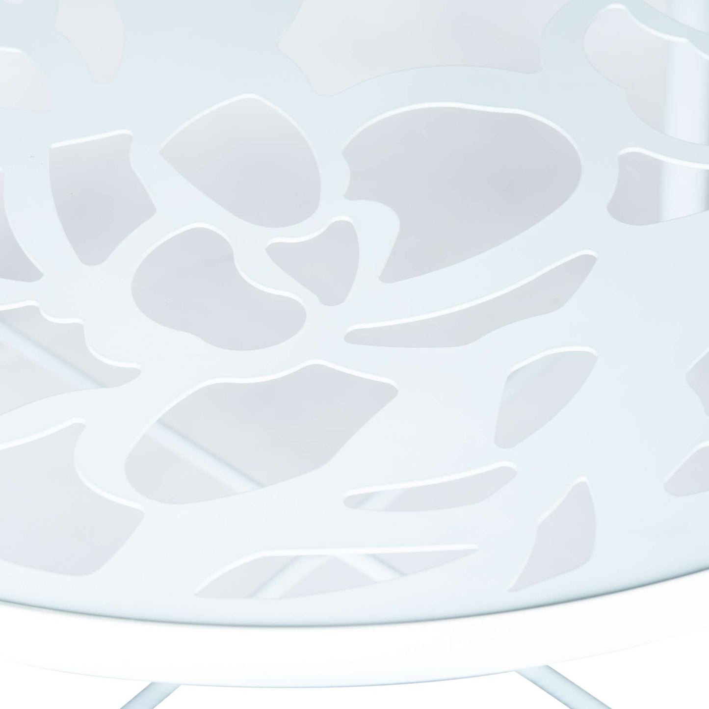 The attractive flower design of this dining table is an asset for the home of any modern furniture lover. The eye-catching stylish design will have your guests raving over your decor. This is the sort of outdoor dining table that makes a statement. The Devon Dining Table is constructed of an aluminum frame three times stronger than steel with a painted finish, crafted to stand the test of time with high-quality tempered glass top. The unique cut-out design lends a modern touch of beauty that can work in a variety of spaces. Great for transforming any area in your home or backyard into an elegant dining area.
