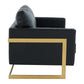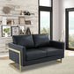 The Lincoln Collection features a classic style that elicits thoughts of modern elegance and grace. Add glamorous definition to your interior space with a Lincoln Loveseat, Designed with simple, modern lines and scaled for use anywhere in your home, the Loveseat seating area is covered in an Leather that is set off by the splendid gold metal legs. The chair is built with durability and supportive comfort in mind, from the sturdy hardwood solids in the frame to the stainless-steel legs to the high-density foam and fiber padding in the seat and back. The Loveseat brings a regal ambiance to this piece, making this a glamorous addition to your home.