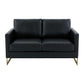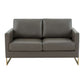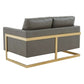 LeisureMod Lincoln Modern Mid-Century Upholstered Leather Loveseat with Gold Frame