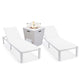 | The modern chaise lounge chair and fire pit table are constructed with a durable aluminum frame with a powder-coated finish for extra strength and longevity. This ensures that the set can withstand the elements and resist rust and corrosion, making it suitable for outdoor use. |