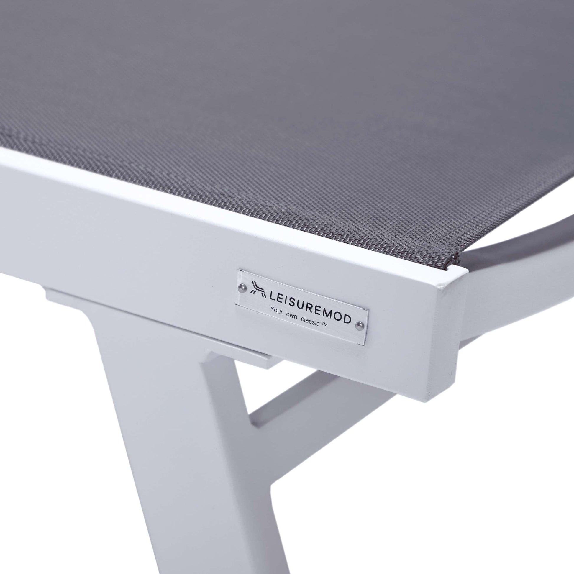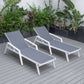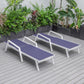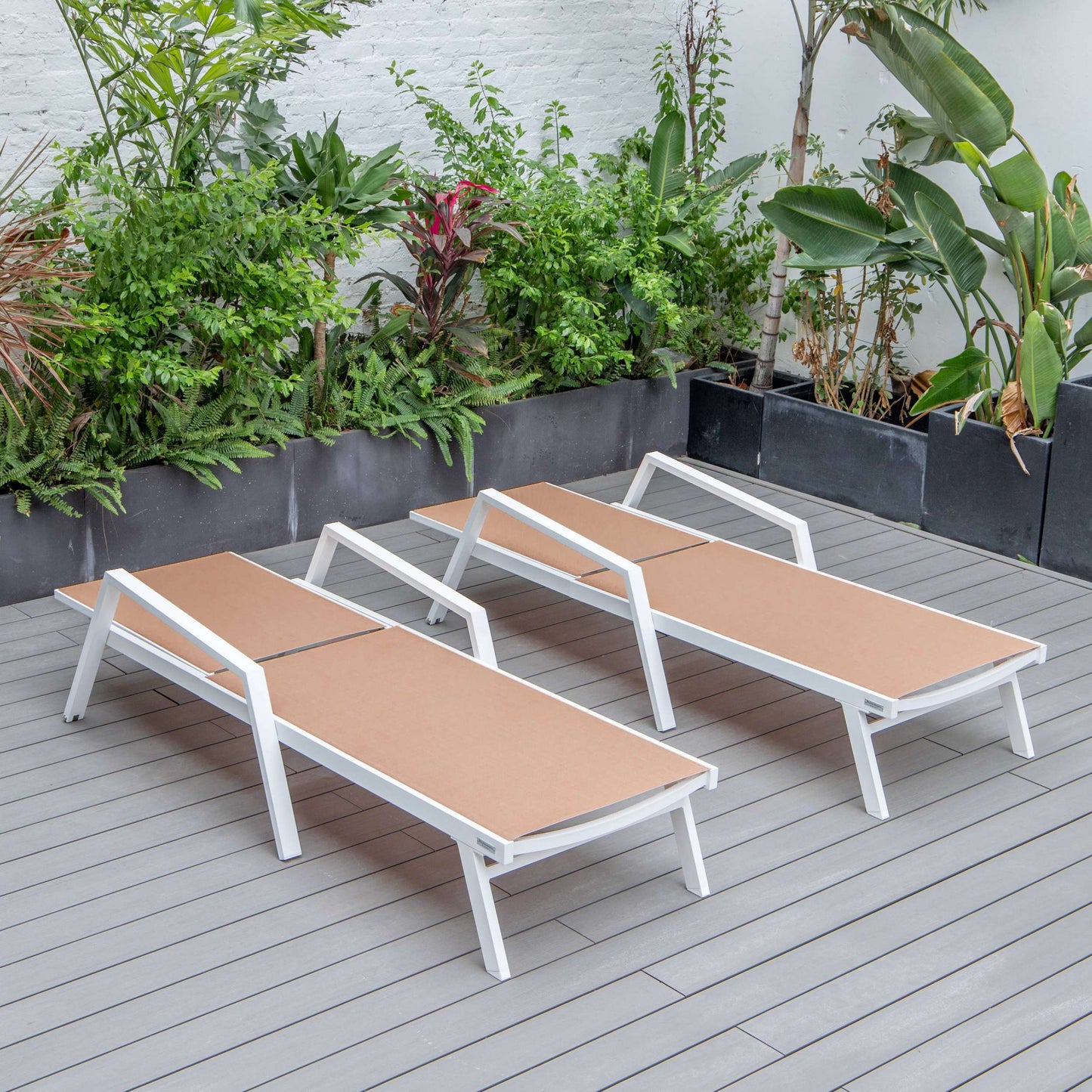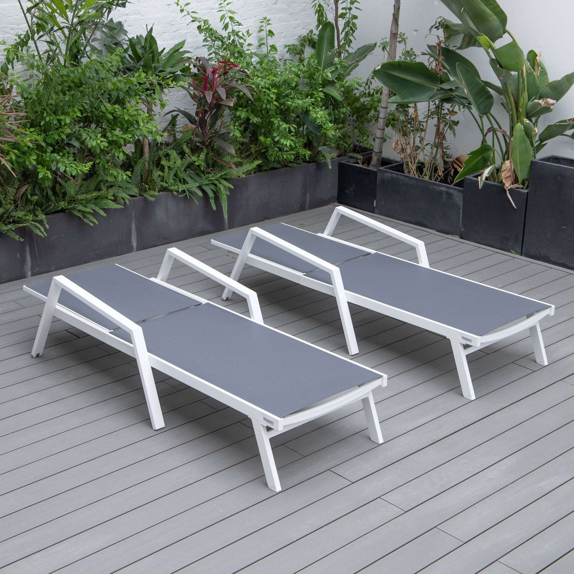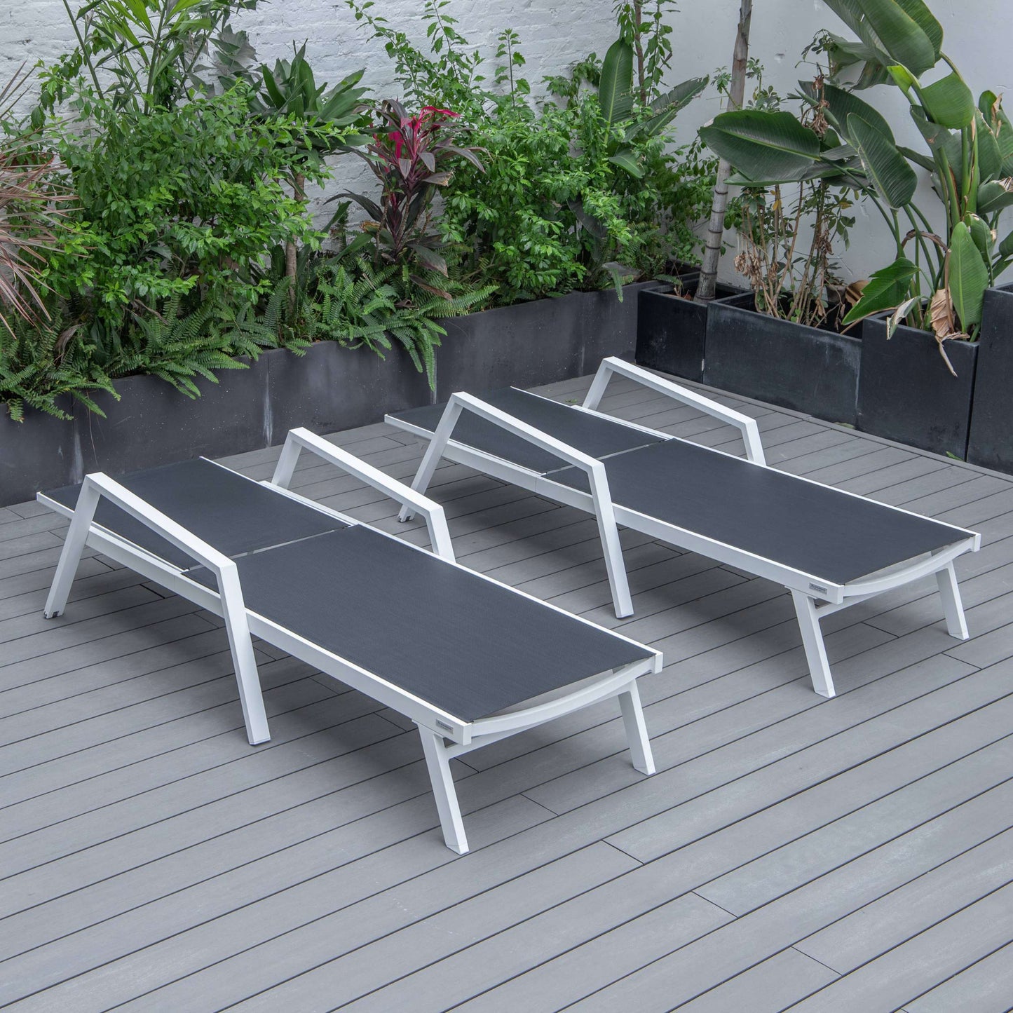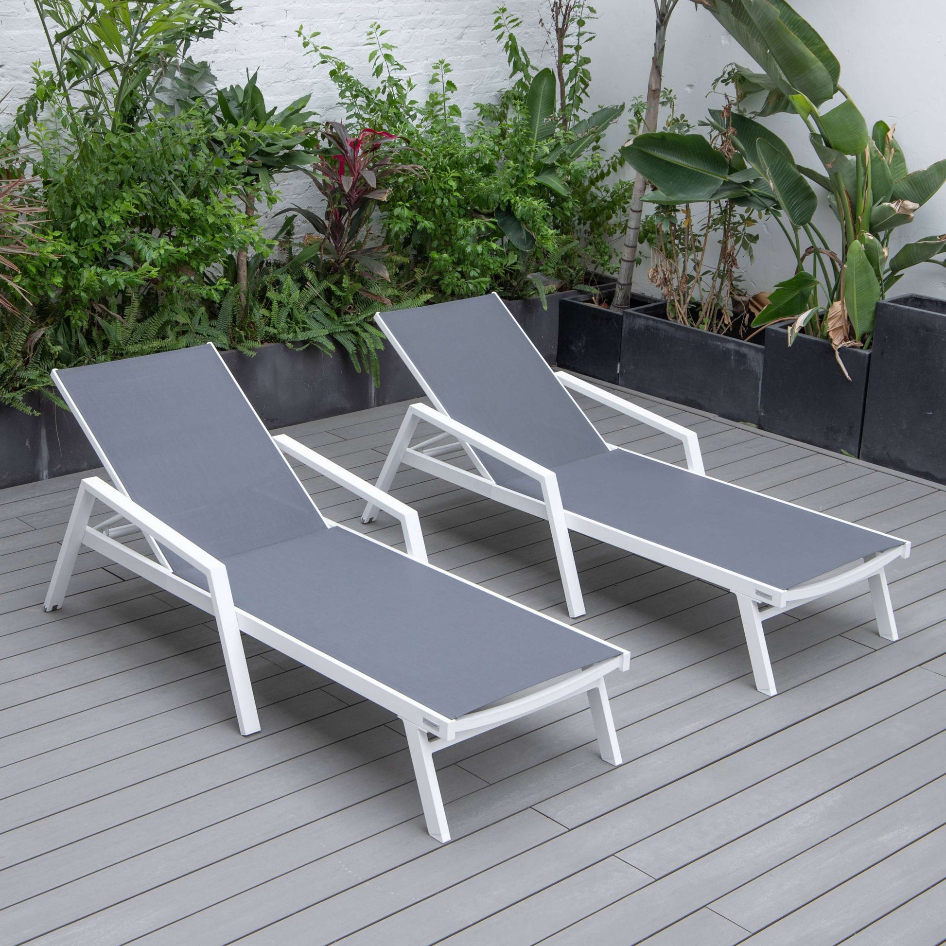 LeisureMod Marlin Patio Chaise Lounge Chair With Armrests in White Aluminum Frame, Set of 2